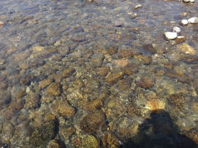 見えるのが野原橋です。内水面漁連から下って一つ目の信号を左折したところです。橋から少し下流右岸へも降りられます。(4WD)見える範囲のトロは全部石がはいっています。 |