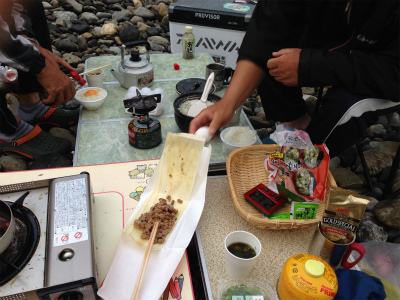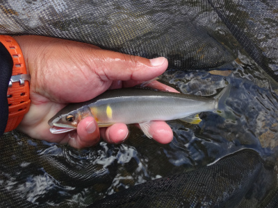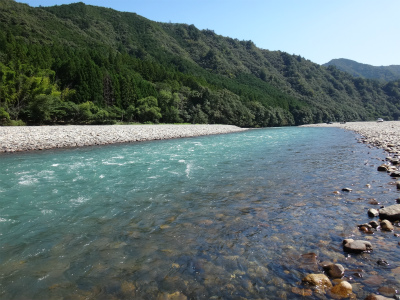 | 台風16号の影響もほとんどなく、釣れだした情報がある北山川。週末に行こうかな、と検討しているところへ、夏は川漁師さんから、「金曜日から行っています。」の連絡。土曜日朝に現地合流です。ポイントはリクエストに応えてもらって九重の上流、百夜月(ももよづき?)というところです。少し上が竹筒です。到着時刻に合わせてくれた、土鍋釜炊き立てごはん付。河原で納豆ごはんを頂きました。自分にとってはどこのホテルや旅館の朝食よりも贅沢な朝ごはんです。食事中には下流方向からブルドーザーが上がってきて、目の前の瀬を横切り上流竹筒方面へ消えていきました。増水後の減水時はジェット船の航路確保のためにブルドーザーで川底を掘り下げています。当然掘り返した場所は釣れません。河原で走行痕をよく見ましょう。 モーニングコーヒーもゆっくり頂き、熊野の朝を満喫してからゆっくりと川へ。川漁師さんが用意してくれた天然おとりを借りて1年ぶりの北山川へ。ワクワクします。しかし釣りの方は至ってシビアでした。ほどなく掛かるも2匹目がバレ。3匹目がビリ。波に乗れず。下がりながら鮎がいるところを探して行くのが北山川のスタンダードな攻め方です。居ればパラパラっと、運が良ければ狭いエリアで入れ掛かりになりますが、パラパラを探すのも大変でした。次の瀬の手前まで下り、深瀬からの駆け上がり付近で良型がプチ入れ掛かり。その下の瀬も期待大。ですが他の方が2人入って来られてアウト!少し前までは一人一瀬が熊野のルールでしたが、交通の便が良くなり釣り人も増えて、そうも言っていられなくなりました。でもやってみると分かると思いますが、狭いエリアでは長時間出来ないのが北山川です。粘って掛かるのはトロくらいです。動けない北山川は厳しいです。なのでゴムボートで対岸へ渡る人や、瀬渡し舟で竿抜け場所を探す人もいます。午前中は14匹でした。 お昼になったので移動します。少し下流の四滝へ。長い良い瀬が有ります。トロから開始してみますが掛かる気配なし。瀬ではポツポツです。ノーマル仕掛けで流芯にはなかなかおとりが入りませんが、際で反応あり。良いおとりが獲れて、流芯へ入っても反応薄い。いくら良い泳ぎでも居ないところでは待てど暮らせど掛からず。ちょっと動かしているところに行けばガツーン!と追ってきます。午後も14匹でした。釣りを終えて2011年の台風12号大水害の被害から温泉施設だけ営業再開した「さつき温泉」へ。きれいになって水害の痕跡は分かりませんが、高台にあるこの施設の天井近くまで水位が上がったことを聞くと、とんでもない水量だったことが想像できます。COOPで川漁師さんが仕入れて来てくれたお刺身などで夕宴です。天の川、人工衛星まで見える夜空が熊野もうでの楽しみでもあります。獣の気配を感じながら爆睡。 ※熊野市からでも新宮市からでも熊野川、北山川方面にはスーパーコンビニが有りません。三和大橋近くにある熊野行政局という建物の中にCOOPが有ります。水害に会ってここで移転再開されたようです。生鮮品も売っています。土日も営業しているようですが18時までです。 翌朝は一面に朝霧がたちこめ、山と空が青く見えました。今日も良い天気になるでしょう。赤木川合流点の熊野川本流はとても良いポイントで良く来たところです。土日は十津川にあるダムからの発電放水が止まるので濁りも少ないですが、発電放水がある平日はダムの濁りが酷く友釣りができる感じではありません。あの濁りは魚にとっては「公害」でしょうが、何とかならないものでしょうか。一応川を見てみると若干食み跡もあり鮎も跳ねています。試しにやってみますがヘチだけ少し食んであるだけで流れの中は泥被りの石が多い。すぐに終了して昨日の四滝の瀬をもう一度おさらいに向かいました。しかし反応は昨日より悪く11時までの2時間で5匹だけ!途中昨年G杯チャンプのK名人がやってきたので少しお話しましたが、70匹近く釣れた木曜日から随分水位が下がったようです。やはり鮎が動いたあとは活性が上がりますが、水位が下がると釣り荒れも加わって一気に厳しくなってしまいます。午後も厳しく3匹だけ。3時に終了して早生のミカンを買って帰りました。 熊野、北山川ですが、紀勢自動車道路の延伸と尾鷲熊野道路の開通で随分楽で早くなりました。行きは夜9:45鈴鹿出発、津ICから高速利用で道の駅、瀞峡街道・熊野川に0:15着でした。帰りも15:30北山川発、R311経由でみかん購入、途中PAで休憩して18:30には家でした。4WDは必須ですが、湯ノ口温泉にはバンガローもあって安く泊まれます。他の河川にはない魅力がいっぱいの北山川、イイですよ。大きな増水が無ければ10月いっぱいは楽しめます。 |
