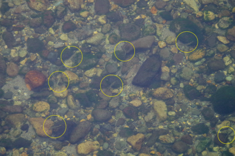 | 2014年10月5日、メジャー大会も全て終わった終盤、つり人社さん主催で行われた「鮎釣りALL STAR CLASSIC」を観戦してきました。メーカーの看板テスター4名によるチーム戦です。 当日は雨模様で寒く、渇水でシビアな状況を一層厳しくしていました。その証拠に名だたる名手たちでも坊主続出!しかし片や込15匹と掛ける選手もいました。何が釣果に結びついたのか自分なりに考えてみます。 前日の実釣から、野鮎は多く居ますが、養殖おとりや天然でも弱ると途端に相手にされなくなります。橋上から見ても野鮎は深いところから浅いところ、ヘチまでしっかり居ました。しかも普通に追い合っています。なぜこれが掛からないのか不思議なくらい。 一つの試合での最多釣果は山本さんでした。トロ尻の石が頭を出しているチャラです。水深はそれこそくるぶし程度のところまできっちり攻めていました。竿先がおとりと一緒になって動く竿操作はリモコンのようです。水深が浅いのでおとりの泳ぐ高さはあまり重要ではないのか。山本さんの釣りが那珂川の状況にばっちり合っているように見えました。しかし!2試合目は1匹目が掛からずまさかの坊主。鮎は多く見えていたそうです。と言うことは第1試合、浅いチャラでも群れ鮎が掛かるのではなく、きっちり追って掛かっていたのですね。 この第2試合では、同じブロックの廣岡さん、小沢聡さんも残り時間15分まで坊主!名手3人が1匹も掛けられない状態でした。ですが運よく?1匹掛かったのが小沢さん。多くのギャラリーの前で思わず笑みがこぼれていました。おとりが変わるとさっきまでの状況が嘘のように3匹入れ掛かり。名手でもどうにもならないときも有るし、おとりの元気さは何にも勝ることを再認識させられました。 そして名手9名が戦った2試合合計釣果では島さんが18匹でトップでした。1試合目8匹、2試合目10匹。2試合まとめたのは島さんだけ。この大会では選手全員が竿はプロトモデルを使っていましたので、真っ黒けで何か分かりませんでしたが、島さんは今年発売のリミプロRSでした。先般のフィッシングショーでお聞きすると、今までのRS史上、最高の出来!と言っていましたが、竿のおかげでしょうか。いやいややっぱり技術だと思いますが、厳しい時ほどソリッドは威力を発揮するのでは?とも考えてしまいます。さてあとは各写真でコメントします。 ※大会時は名手たちがマイクを付けて戦っていました。その様子は「別冊つり人」の付録DVDで映像と共に聞けるそうです。名手たちがどうやって厳しい状況を克服していったのか、とても興味がありますね!発売が待ち遠しいです! |
