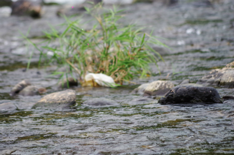 | 村田名人は岸に立ち、手前をきっちり探る。 | 村田名人の目印です。 |
