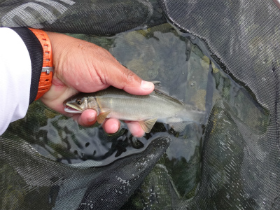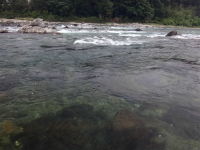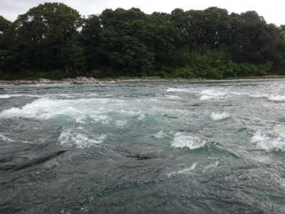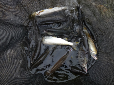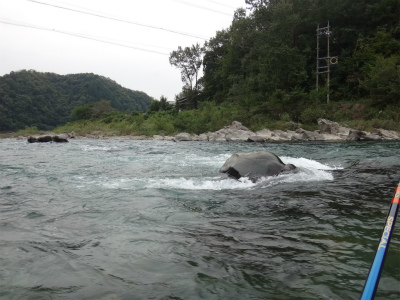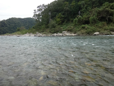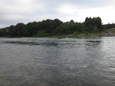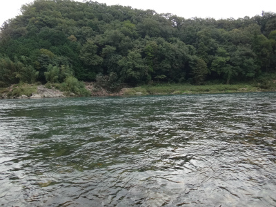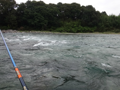 | 台風18号の雨で紀伊半島の河川はしばらく無理。続く19号でダメ押しかも。長良川水系にはあまり影響なく、中央へ行ってみました。例年終盤によくいく岐関大橋付近はイマイチのようなので、あまり行ったことのない関観光ホテルの下へ。鮎の瀬大橋の上流です。右岸の止めやすい駐車スペースに車を置いていざ川へ。 以前から小瀬の鵜飼をやる大きなトロ場へ流れ込むトロ瀬が気になっていました。しかし河原には焚火の跡が。夜網をやっているのかもしれません。ヘチの石は綺麗ですが、流芯は曇っている。期待薄ですが一通りおとりを入れてみました。案の定反応なし。場所移動しようかな、と思いましたが、上流対岸に見えるガリの方が結構頻繁に竿を曲げている。ここは岩盤が100mほど続く特徴ある瀬です。左岸へ渡るのはしんどい感じ。右岸でやってみます。岩盤はピカピカ。おとりが4匹もあるので白泡のきつい流れへ入れてみます。じわじわ引き上げて行くとヤナギ針に絡み付くようなガチャガチャした当たりで引っ手繰られました。おなかパンパンのでかい雄です。おぉ、居るのか。岩盤と小石底の境目で反応が出る。少しパターンが見えた。もう擦ってしまったようなオスも掛かりますが、瀬の中で掛かるので面白い。引きは盛期ほどのパワーではありません。それでも岩盤の瀬肩におとりを留めて掛かってきたメスの良型は夏を感じさせる引きを楽しませてくれました。7匹掛かり当たりが遠のいたのでトロを釣り下がります。胸まで立ち込み、沈んでいる大きな岩の向こう側におとりが入るとギュイーン!18pほどですがきれいな鮎。替えて入れるとまたすぐに同じ鮎が!これはお宝を探り当てたか?しかしそれ以上立ち込むと流される。攻めきれず追加できませんでした。2時間で9匹、移動します。 そのまま右岸の細い道を通って上流へ。この路は初めて通りましたが、笠神までの間に良いポイントが沢山ありますね。山崎大橋まで登り左岸へ。途中気になるポイントもありましたが、さっきの対岸へ行ってみます。駐車スペースはちょうど東海北陸道の長良川PAの下です。さっきまでガリの人が良く掛けていたところへ。デカいの、細いの、小さいの色々かかる。浅い早瀬では真っ黒の瀬付まで!さすがにこれはすぐ放流。婚姻色が出たオレンジ色のオスも掛かる。おとりに使うとこれでも掛かる。石色のきれいなザラ瀬も探ってみますがそこでは掛からず、反応が良かったのは左岸でも右岸でも岩盤の瀬が終わるところとその下流でした。昼休憩をはさみ3時まで18匹追加、27匹掛けられました。追いが弱いかなと終日ヤナギ針だったのでケラレを多く感じました。錨ならもう少し掛けられたかも。 この日は天気予報が外れ、お日様が顔を出さず水も冷たくて寒い日でした。タイツの限界を感じます。来年は初めてのドライをオーダーしようかな。体を冷やすのは良くないですもんね。瀬付が釣れてしまったので、最後にすべて放流して長良川では納竿にします。例年より早く感じます。また連れた鮎に冷水病が3匹、痕跡ではなく、赤く身が削れているような状態です。他にも顔曲りや尾が上半分無い鮎などもいてちょっとゲンナリ。紀伊半島の天然鮎でなんとか気持ちよく終わりたいです。 |