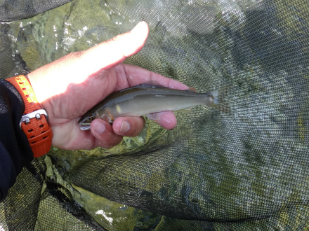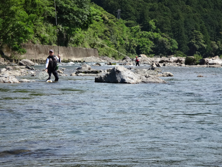 | なんとなくモヤモヤした解禁釣行からシーズン2度目の釣行。宮川のほうが数は確実でしょうが、大内山の年券があること、こっちの方が大きいらしいこと、前日釣友ハルさんが高水の中、20匹ほど掛けたことから大内山川へ。上流まで見ていきます。朝練中のM川名人発見。獲物を待つ鷺のようにじっとして微動だにしません。こちらの存在にも暫く気が付かないほどの集中力。解禁日は92匹も釣ったそうです。釣る人は理由が有りますね。 上流域を狙おうかと思っていましたが、ピンと来る場所が無い。ハルさんと相談してメジャーな平瀬橋へ。追っかけやってきた夏は川漁師さんと道の駅で爆睡していたNさんも合流。他にも数名の釣り人です。 橋周辺は石色イマイチですが、水深のある緩い流れの終わり、瀬の始まり付近は良い色に見えます。この辺からスタート。水が解禁の宮川より冷たく感じます。1匹目のおとりがすぐに浮いてくるので2匹目を登場させて馴染むと掛かりました。鮎は居るようで一安心。次も早かったので期待が膨らみますが、根掛かりついでに沖へ出て左岸側を探るもドラマは無し。一回りしてまたスタート位置へ戻り、左岸よりの石が並ぶ馬の瀬付近を丁寧に泳がせるとポツリポツリ掛かる。でも数は少ない感じで続きません。天気は最高ですがお昼までにツ抜けもできず。 2時間ほど休憩して午後の部です。橋上流部のざら瀬右岸よりを探ってみますが、1匹だけ。色は左岸より良いみたいですが。深いところを今度は左岸へ渡って、右岸からおとりを入れにくい流れを狙うと良い当たりが連発してこれが本日最大のクライマックス、で6匹だけ。結果1日やって14匹です。べた竿で次々にポイントを打っていくハルさんが17匹。あのスタイルで小さいおとりをよく繋ぐものだと感心しました。自分は信念無く色々な釣り方でやりましたが結果でず。竿が変わった姓ではないと思いますが、どうも強く引き過ぎる時間が長い。修正していかねば。 昨年は解禁から10月終盤までずっと良かった大内山川ですが、昨年よりは川の出来上がりは遅いようです。今後に期待ですね。 |