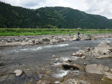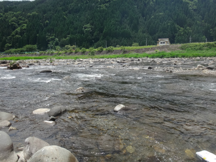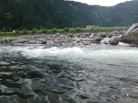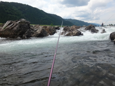 | 今年も懲りずに大会参戦です。スタートはダイワマスターズ大和地区予選から。昨年に引き続きシード1番で決勝戦からの参加なので、かなり有利です。厳しい1回戦を高みの見物。「どこが」釣れるのか?ではなく「どうやって掛かっているのか」と「時間でどう変化するのか」を見るようにします。 冷水病で沈んでいる鮎も見えますが、これはここ数年同じです。絶対数的には元気鮎のほうが多いので「追わない鮎をどう掛けるのか」は考えません。昔はそればかり考えて結果が出なかったので今はシンプルに「追う鮎を掛ける」を考えて挑んでいます。それで勝ちあがれなかったら仕方ないと諦めています。 さて、予選見学で何が見えてきたか。今年の郡上は鮎は多いようで、どこでもポツポツと竿が曲がっています。しかし連続で掛かるのは深い場所や、瀬肩から下のちょっとした溜まり付近です。広がった瀬はかなり厳しい感じ。見た範囲で一番掛かっていたのは栗巣川出合いから下の早瀬です。毎年ここは掛かっていますが、今年は特に密度が濃いようで、大混雑にもかかわらず皆さん掛かっています。ギランギランと鮎もうじゃうじゃ見えます。渇水で冷たい支流が流れ込むことが良いのでしょうか?予選で掛かった場所は決勝でコケる場合が多いですが、ここは決勝でも鉄板でしょう。ただし混雑必至。杉が瀬やなの前も鮎がいっぱい見えて掛かっています。しかしどちらも全て追っている鮎かは見ていても分かりません。上流エリアはどうか。こちらの方が良いかと思っていましたが、どこも苦戦の様子。ポイント、戦い方が見えてきません。本部前岩盤の瀬もこの渇水では釣り辛そうだし、ポイントが小さくてアユの絶対数も少ないみたい。昨年入ったポイントも浅すぎて石色が良くありません。それでも開始時間が迫ってくるので戦い方を決めなければ。導きだした答えは、 @渇水で釣り人も多く、鮎が安心できる水深があり白泡があることろ。 A瀬尻で鮎が溜まっている瀬肩のごちゃごちゃしたところ Bダイレクトに栗巣川出合い下! 決勝開始です。1番スタートで追い越し禁止なので場所選定は自己責任。結局どこを選んだかと言うとAを基準に本部前の岩盤瀬です。昨年のポジションから1段下がった岩盤の瀬から瀬肩のガチャガチャしたところへの変わり目くらいに左岸から立ちました。最後まで迷ったのはBのすぐ上にある栗巣川と合流するすぐ上のポイントです。ここはまさに@のポイント。予選時はそこを泳がせで探っている選手は居ましたが、白泡の中を攻めていませんでしたので、必ず居ると思っていました。ただどこまで数が出るかは不安。それで最後は本部前に。近くで見ると石色も良く気配はあります。さて2時間集中! 竿は寝かせて流れに馴染ませて待ちます。程なく動き出しました。上流へ上りあがります。遊び鮎が居る様子。これでおとりを変えて攻めるのが理想ですが、一向に掛かりません。周りではポツポツ掛かっている。おとりを目の前に戻して勝手に泳いでいかないように竿を鋭角に寝かせて止めて待つように変更。15分ほど掛かりましたが、横に動いた瞬間にシュッと掛かりました。思っていたよりもサイズが良い。天然に変わっても同じ攻め方で止めて待つ。ジリジリしますが間をおいて掛かります。全て追ってくるアユです。1時間弱で6〜7匹掛かりましたが、そこから渋くなり追いを感じません。 残り50分、移動します。下流の方の下に。坪へ落ちる手前のポイント。対面に選手が居たので手前の小さな坪しか攻められません。そこは予選時、O名手が丹念に攻めていた場所。ふとその下の坪は、平水なら攻めにくいポイントですが、渇水で攻められそう。ここはまさに@の「鮎が安心できる水深があり白泡があることろ」ではありませんか。そこへ降ります。白泡の向こう側で掛かるかとおとりを滑らせると、白泡流芯でいきなり掛かる。黄色いアユ!渇水といえども太い流れで流芯は攻めにくかったですが、追い気満々のアユは少々浮いていてもお構い無しのようで良い当たりで掛かりました。白泡向こう側では小さいのも掛かりました。白泡流芯を攻め切れればもう少し掛かった気配はありましたが、これが限界です。そしてチビアユを舟に入れる際に逃がしてしまう失態。斉藤師匠がずっと後ろで見ていてくれて、終了し上がるときに「込み15匹や」と教えてくれましたが、やはり検量すると1匹逃がして14匹でした。結果を見るとその1匹で表彰台を逃していました!残念ですが、ブロックへなんとか行けることになり、夢への権利を繋ぐことができました。 ブロックの九頭竜川中部管区上流エリアはほとんど入ったことがないエリアです。ジャパンカップファイナルの取材時に試合を見ながら自分では攻められないだろうな、と思った流れです。できうる限りの準備下見をして挑戦します。 良かったところ おとりを制御して追う鮎を狙って掛けた実感が持てた。 上記から移動のタイ