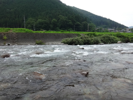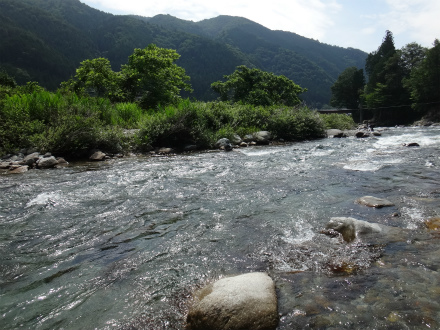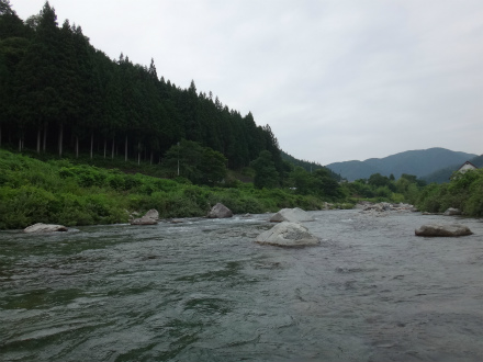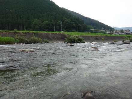 さて下見から大会の戦い方を考える。ポイントは自分の釣り方、気配を感じて掛かるのを待つ、が、し易い流れを狙う。そのポイントを如何に見切るかが重要な気がする。そこはそのとき考える。竿はラシュラン、ラインは複合0.03号(細いほうが調子良かった)、針はがまかつ全の7号4本錨、強い瀬では6.5号にする。朝一番は細めの刻にしようかまだ悩む。増水、水温低下した場合は瀬脇で立て糸!そして前日の下見は仕掛け合わせ程度にし、短時間にする。本番で体力が持ちません! |
