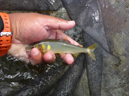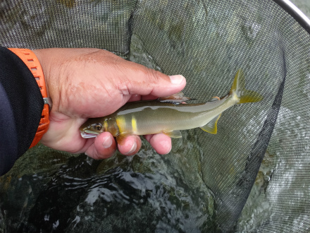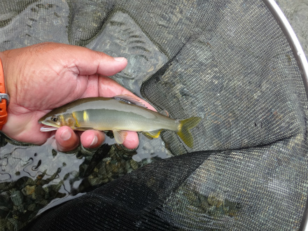 中スポ杯の下見です。予選時間に合わせて6時から開始。すぐに掛かる。落ちる。また掛かる。替えて出し掛かり。土曜の増水が落ち着いて、前日は水温も上がり、この朝は冷え込んでいないためか朝から掛かるのか!と思いきや、次の鮎がまた落ちてから掛けられなくなる。大会と思ってやっていたので妙な焦りが出てポイントを見失いました。その後も3匹連続空中で落ちる。なんと2時間で2匹!気持ちを切り替えてそこからはいつも通りの釣り方に変更。普通に良く掛かる。2時間半で25匹。