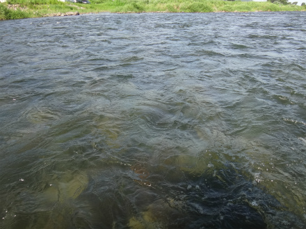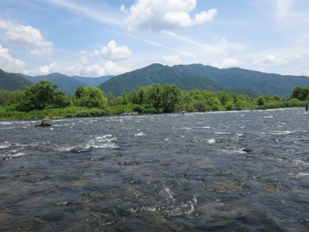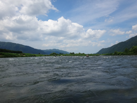| ダイワ鮎マスターズ中部ブロック大会に参戦してきました。大会前日23日に九頭竜川イン。今シーズン初の九頭竜川です。大会エリアの中島、坂東島はシマノジャパンカップファイナルの取材で見ただけで、このエリアで竿を出すのはこの日がはじめて。当初予定では中島地区だけでの予定が、釣れないのでエリア拡大したそうです。 中部エリアでも屈指の瀬、坂東島からやってみました。下見をした方々の話では、「釣れない」、「そう大きくない」が共通の意見。実際にやってみた感想。石が大きくて歩きにくい。少ない反応を捕らえて待たないと掛からない。浅いところでもたまに掛かる。ここでは2時間半ほどやって6匹だけ。 上流エリアへ。中州の向こうがどうなっているかも知らないので、まずは上の中州から。向こう側はトロ。パスして上へ。放水口からの流れは面白そう。16cmくらいの小さい鮎が多く見えました。ザラ瀬でも拾え、予選向きな感じのポイントでした。この辺りで10匹ほど追加して終了。 下見の感触で明日をイメージ。予選ボーダーは一桁か。目標は前半5匹、後半5匹です。キモはおとりを広範囲に動かすこと。鮎が薄いので出会いの機会を増やさないとノルマ達成は厳しい。大きい鮎で23cmだったので、坂東島でも竿はラシュランで十分あしらえる。やわらかいからかバレが無くて良い感じ。針は要7.5号3本錨。ちょっとごつい気もしますが、不意の大物を考えると妥当か。糸はメタマグナム0.06にしました。さて温泉入ってビールタイム!会場近くの道の駅禅の里は、温泉が小さくて混雑するので、勝山の温泉センター水芭蕉へ。ここは広々。帰りにお惣菜が充実のスーパー「かじ惣」で仕込んで後は飲んで食って寝るだけ!幸せです。 さて、当日も良い天気。抽選はBの58番。下流の真ん中くらいです。マスターズは選手がほんと殺気立っていますね。さてスタートです。坂東島の瀬肩が右岸への渡り場所に指定されていました。Aブロックもここからしか渡れません。Bブロックはほぼ瀬のみ。トロチャラは瀬肩付近のみ。スタートが遅いので右岸へ渡る。行きたかったのは瀬落ちの開き。瀬ほど強くなく広く探るには持って来い。それに地元の方たちが立ちこまずにポツポツ掛けていたので、鮎が溜まるところのようだったからです。が、思いのほか遠い!川の中を行くのでしんどい!先行者が何名かいたので諦めて、坂東島の瀬、中段からスタート。おとりが変わるのか心配しながら、落ち着くところで最初は待つしかありません。周りもスロースタート。程なくブルブルッと掛かった!ヤバイ!口掛かり!素早く抜くが落ちた!でも掛かって一安心。また掛かるだろう。同じポイントで粘るが一向に反応が出ない。しかし養殖おとりでは坂東島の瀬を広く探ることは難しいと思い、攻めることを躊躇してしまう。粘って弱らせてから動き出したので余計に悪い。温存した養殖2号を出して強い流れを攻めるが掛からず。残り45分で少し下流へ動いてややゆるい流れへ。おもり1.5号を着けて下流へ入れては引き上げる、1m下がる、また同じ動作で広く探るを実践するとやっと掛かった。替わったおとりで攻めるが、今考えるとこの時はおとりを動かさずに待っていたので反応を得られなかった。この時こそおもりを着けて広く探るべきだった。 残り15分、エリア交代に向けて仕掛けをしまう。ほぼドンケツでAブロックへ。この時点で込み3で諦めモードになっていた。本部すぐ近くの左岸の流れに入ってみる。石色悪い。右岸側の流れに行こうと中州へ渡って行くと、際は磨かれていた。渡りきらずに少しバックして流芯から際狙い。1匹掛かった。これは良いか?反応はあるものの追いは無く掛けられない。下の瀬へ。おもりを着けて瀬の中で待つ。ドドーン!と掛かった。こうやって攻めたらよかったのか。この元気なおとりであちこち探るが、おとりが入りやすいところでは全く気配なし。また荒い瀬に入れて待つ。残り10分でドドーン!と掛かる。4時間近く掛かってやっと掛かるイメージが掴めたが、時すでに遅し。込み6匹と言う貧かで終える。5回目のブロック大会でしたが初めて予選落ち。決勝を見る気力なく岐路に着きました。 中スポ杯に続き今回も反省ばかり。今回の反省点です。 予選勝上がりを意識しすぎて攻められなかった。自分に実力がついたと変な自信が少しあり、謙虚に一生懸命釣る、という姿勢がなかった。そのおごりから開始まもなく諦めモードが出ていた。初心に帰り、その場面で如何に鮎を掛けるかだけを純粋に考え、自分と戦うことに集中する。次は郡上杯です。絶対にこれを実践するぞ! |