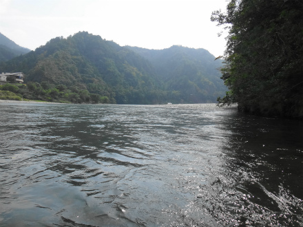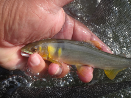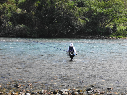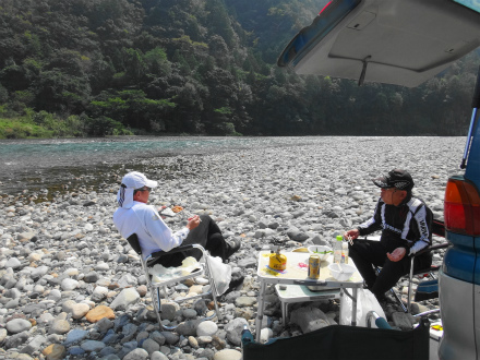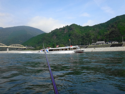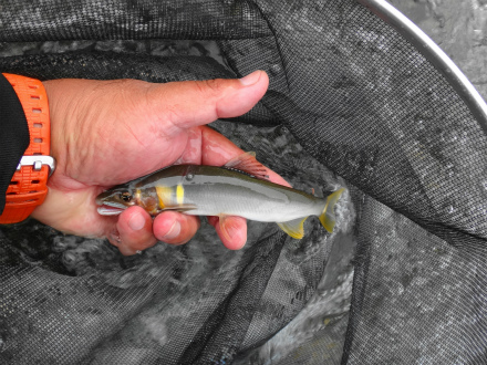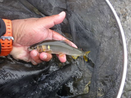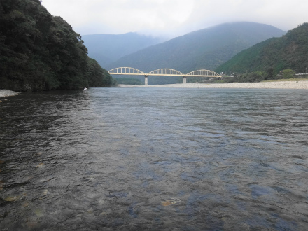| 釣行日前日は四日市で高校時代のクラブのOB会がありました。30数年ぶりに会う同期や先輩、先生はどえらい老けているなあと感じただけ自分も歳を取ってしまったのですね。あ〜いやだいやだ。締めは高校生時代に通った四日市飯店、ここも同じく久しぶりでしたが、相変わらずウマイ!ここだけは変わっていませんでした。 さて3時に四日市を出発、北山川へ向かいます。一番面白い9月が、今年は雨続きで欲求不満状態。今回も台風の合間を縫っての釣行です。前回は垢が薄く苦戦しましたが、そろそろ新垢も付いて普通の釣りにはなりそうです。七里美浜を望むロケーションに立つすき屋で朝食をとっていると夏は川漁師さんも到着。私を北山川にハメた張本人です。 ポイントは前回と同じく瀞流荘前右岸です。久しぶりのワクワク感で流れに入りました。釣り荒れは間違いないので、丁寧に広く探ることを心がけて。15分ほどかかって1匹目。黄色い鮎でテンションアップ!おもりを1号から装着して引きやすい2号までアップ。長良川で見たハルさんの真似をして下流へ送り込み扇状に引き上げてきます。反応を感じたら少し待ってみる。淡々とコレを繰り返す。かなりの速さで引きます。何度も針に当たる感触がありますが、掛かるのはたまにです。流芯に近いほうは反応が薄く感じ、浅いところと深いところの中間点を引いて午前中は15〜20匹くらいか。久しぶりにやってきたY田さんも加わってお昼は移動よりもビールを選択して小宴。この場所では何でもウマイ!最高の時間を過ごせます。 さて午後は瀬肩のトロへ行って見ます。長良川中央でもこの時期はトロ尻にまっ黄色の鮎がわんさかいます。狙ってみましょう。トロですが北山は押しが強い。水深もあって泳がせ上飛ばしは至難の業!ここでもおもりを着けて引き釣りです。ここは1号でちょうど良い感じ。湖産と違って海産は縄張りが広い。そして北山は押しが強いので川底にへばりついているイメージをもって川底を掃いていきます。正面より下流側のときに反応が多く出る。ダダッと掛かる。水深があるので引きを楽しみながら抜けてくる鮎は全部まっ黄色!超楽しい。 午後は風が強くなったので細身のラシュランを使いました。穂先が高感度のエキサイトトップですが、色んな音が聞こえてきます。おもりが石を叩く音も良く聞こえてやりやすい。でも何の音か分からない音も有りますのでまだまだ使い込みが足りません。この日の風は川上からの強風。普通の竿だと風で折れるかも!と感じることがありますが、ラシュランは不安を感じません。まさに風を切る感覚で使えます。 しかしトロも魚影が濃い感じではなくポツリポツリ。沖へ出ても良いわけではなく掛かる筋が限定的。浅いところから深いところへ徐々に新垢が着きだしている状況なのでしょうか。中間ぐらいが良い感じに思えました。瀬では立ちこまず手前のザラ瀬を静かに探っているとたまにビューン!と掛かる。4時を回ると追いを感じなくなり、なんとか1匹良いのを掛けて終わろうと粘りましたが1時間以上掛けられずに終了。ちょっと消化不良気味でしたが、黄色い鮎を掛けられたので良しとしましょう。 続く台風が気になりますが、今月は16日に試験を受けるので3日から禁鮎、禁酒の「つもり」です。17日以降、納竿釣行に行けたらな、と考えていますがどうなるでしょうね。北山の鮎もメスはおなかがふっくらしていました。例年よりやや早熟に感じましたが、最後にガツーン!で終わりたいものです。 |