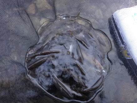 | 自分がやった辺りでは大きいのでこれくらい。20cm止まりでした。もっと立ちこんで流芯を攻めてみたらよかったと後悔。 | 32匹でした。追われ感や、針に触る感覚が多くあったので、もっと釣れたのかも知れません。少し消化不良気味。もう1回来られるか? |