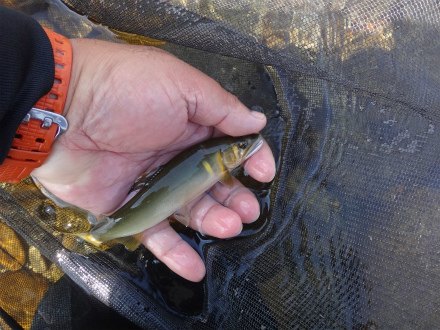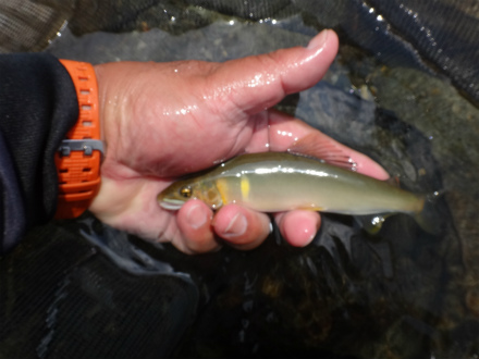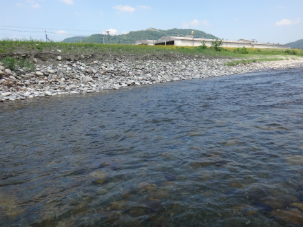 | 2009年までは5月解禁と言えば根尾川くらいしか無くて、しかもそこそこ釣れたので良く通っていました。盛期も中流域では天然遡上がバンバン掛かって良く通っていました。しかし近年は初期も盛期もパッとせず、他にも早期解禁河川が増えて足が遠のいていました。しかし今シーズンは釣れるらしい!22日には斉藤師匠が60匹以上を釣ったと言うことで早速行ってみました。本解禁までは漁協しかおとり、券を扱っていないらしいので、開店の8時まで少し漁協付近、谷汲山大橋付近を川見してきました。結果、良く分かりませんでした! さて、大野橋上流に車を停めて川を見ると渇水で丸見えの左岸の流れに鮎が見えます。石色もきれい。師匠情報で右岸の流れで開始です。石色はとても良い感じ。渇水の大内山川用に作ったナイロン0.125号仕掛けで開始。複合と泳ぎの違いが分かりませんが、ぼちぼちときれいな鮎が掛かる。しかし前日名手がきっちりさらった後では厳しいものがあります。期待ほどは釣れずお昼休憩に戻るときに左岸側の流れもチェック。竿が向こう側に届く流れですが、予想外に良いのが掛かる。最大でも17cmほどですが、きれいな鮎が良い当たりで掛かれば満足です。昼食後は堰堤の上を見に行って見ました。堰堤には遡上できない稚鮎がわんさか!ぴょんぴょん高い堰堤にチャレンジしています。堰堤上は水深がある流れで友釣りには不向きな感じ。徘徊してまた朝の場所へ。ポツポツ追加して終わりました。久しぶりの根尾川下流域での釣りでしたが、昔はこの時期、友釣りで釣れればラッキーな感じでしたが、今では欲張りになってもっと釣りたい!と思ってしまいます。人間の欲は果てしないですね。 ところでこの日、午後2時頃から中学生らしきチャリンコ軍団10数名が大野橋の下に集結、イジメでも始まるのか?ところがどっこい、皆服を脱いで川へ!川ガキの甲高いはしゃぎ声は、自分にとってはとっても気持ちの良いものでしたが、暫くするとそこへパトカーが。案の定、川から上がらされ、何やら説教されて(想像)解散させられていました。痛ましい水難事故が未然に防げればそれに越したことはありません。が、自分からするとなんとなく違和感が。自分も子供時代は夏は川遊び、冬は雪の上でした。そのときに五感で感じた「ここは、これ以上は、こうすると、アブナイ・危険」という感覚は今でも生きていて、自然を相手にした行動では常に基本となっているような気がします。そのような経験を得ようとしても止められる今の時代、仕方ないと言えますが、少し可哀想な気もします。 |