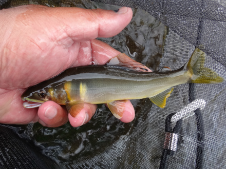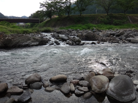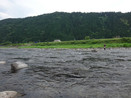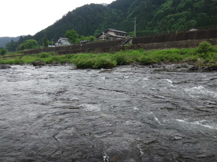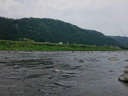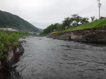 | 2017年、最初の大会はマスターズ郡上大和予選です。下見の感触から今回の予選での狙い目は、流れが速く白泡とその横にやや緩い流れがあって、水深もそこそこあるようなポイント。 くじ引きは343番、下流の最後尾スタートでした。川を見ながら空いている場所で上記狙い目条件に当てはまるところを探します。栗巣川出会いにも条件に合うポイントがありますが当然選手がいます。次は杉が瀬やな下流です。郡上杯で良い想いをしたポイントもこの渇水では流れが死んでいます。そこから下流でポイントを探すことにして川へ下りました。しかし微妙に入るスペースがなく、どんどん下っていくと、大トロに落ちる白泡段々瀬の肩だけ空いています。竿を出したことがないポイントですが、意外に狙っていた条件に近いところ。迷わずここに決めます。 手前の緩い流れも石はきれいなので鮎はいるのでしょうが、養殖おとりでこれを狙うと私の場合は間違いなく失敗します。そこに立って白泡の肩にある畳2帖弱の坪へおとりを入れました。すぐにギャギャンと掛かりましたが、おばせ出しすぎていて針立ち悪くバレた。こんどはおばせを出さないように、流されないように堪えて待つとほどなく強烈な当たり。白泡と逆光で目印を見失ってしまい、坪から流れ出て白泡洗濯機の中へ落としてしまいました。無理に抜きに掛かったらポロリ。付いて下がるべきでした。坪は勝負が早いですが、付き鮎が数少ないのが難点。他は小さい遊び鮎のパターンです。それを狙いますが掛からない。でっかいおとりでは狙い難い。その坪を捨てれば左岸側の坪も探れますが、そこはまだ残しておきたい。 対面にいた選手外の方が少し上流へ動いたので自分も少し上のザラ瀬へ。ここは居そうな感じ。流れに入れて待つ。小さいがやっとおとりを替えられた。すでに1時間経過のころでした。その周辺を徹底的に探りぽつりぽつり追加。7〜8匹掛けたかな?というところで残りは40分ほど。最初の坪と残しておいた左岸側の坪を探ると今度は良い感じで黄色い鮎が掛かる。残り5分、良いおとりを持って散々探った上の流れに戻って引いてみた。ギュン!黄色い鮎!残り3分でおとり交換して放つと最後にもう1匹掛かり、タモに受けたところで終了。残り30分の釣り方は重要ですね。結果は込み16匹で第一関門突破。 決勝戦です。ブロックへは10匹釣れば大丈夫だろうと考えました。下流エリア10番目だったので、シード6名の後、20番目くらいのスタートです。好きな本部前のガチャガチャも入ることができましたが、少し上の本部前支流が合流する辺りに立ちました。鮎は間違いなく多く居ることと、お昼頃になって追いも出てくると読んで、10匹くらいならここで楽に釣れる「だろう」と安易に考えていました。 スルスル〜っと出て行くおとりに反応が出るかと期待しますが、ケラレてしまう。黄色い鮎にめぐり合わない。やっと掛かってもバレる。周りはボツボツ掛かっています。40分ほど粘るが掛けられず。この時点ですでに諦めモードが入ってしまっていました。やはり精神的にも実釣的にも早い時点での1匹目は重要です。読みが外れると、その後はさてどこへ動こうか全然ひらめきません。下って瀬が落ちた荒いところへ。ひらめかないので、昨年ここで拾えたという過去のよい時をイメージしての場所選択。これは間違いの元ですね。本当はその時点で周りと川を良く見て入る場所を選択するべきだと散々勉強しているのに、また同じ過ちを繰り返す。ここが弱さです。そんな弱さを見せれば鮎も微笑んでくれません。残り50分ほど。この時点では完全にやる気なし。早く終わってくれと考えているだけ。予選時は残り40分で集中力がピークで鮎も掛かったのですが。ブロックボーダーは終わってみれば予想より低い9匹だったのでチャンスはまだまだあったのにそれを自ら放棄していました。好きな岩盤瀬で3匹掛けて今年のマスターズは終わりました。 今回反省点は多いです。泳がせる技術がないのに自分より上で掛けようとしたこと。移動に根拠がもてなかったこと。そして早々に諦めてしまったこと。やっぱり流れがあるところで勝負せねば。この反省を翌日のJC予選に活かせるか。 |