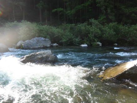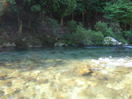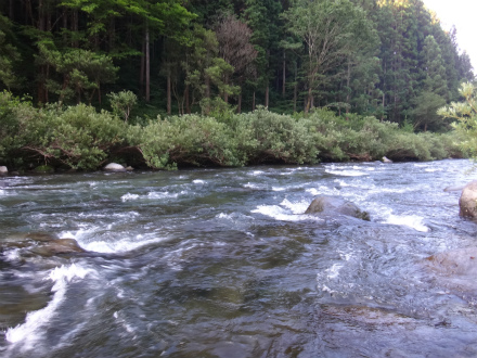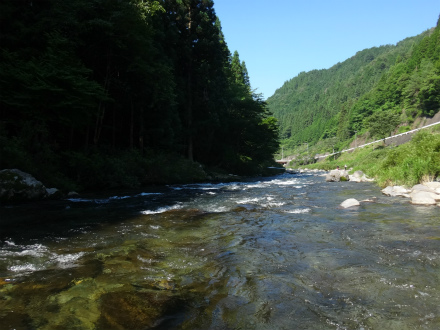 予選ボーダーは9匹、決勝は10番目でおとりをもらい、上流へ。広いトロに落ちるピカピカのザラ瀬に目が行く。こんな感じのザラ瀬で掛かれば数が取れる場合が多い。ひらめきに賭けてやってみた。はい、このひらめきは間違いでした。上のガチャガチャした瀬に行く。しかし居付きは取られていて簡単に掛かる鮎は居ない。やり難いところを狙うのでさらにおとりは弱る。うろうろ迷走する。きゅうりの古漬みたいな色になったおとりでトロを探るお粗末さ。ルアーでも掛かるんだ!と自分に言い聞かせて頑張ったが、残り30分の時点ですでに心が折れていました。結果釣果無く終了。なんという不甲斐なさでしょう。
