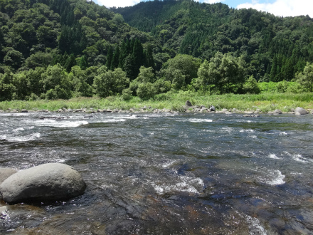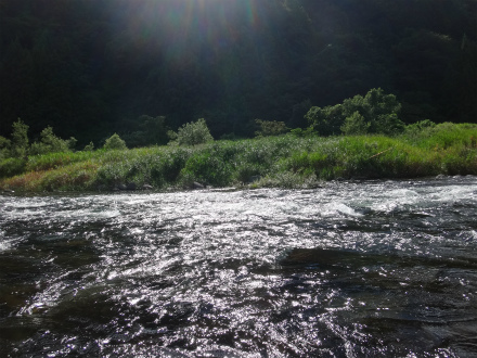 | お盆も終わりいよいよ終盤戦。郡上も専用区を意識する季節になり少し寂しいですね。天然遡上鮎は落ちるのが遅いから、もう少し友釣りを楽しませて欲しいな〜というのが正直な気持ちです。さて今回も交通費節約で車中泊2日コースです。2日目はあの椿さんがやってくるので楽しみです。 初日は白鳥エリア。めだか釣具さんで聞くと、赤瀬橋上の鉄橋上下で良型が結構釣れたと聞き、8月2日に全然掛けられなかったエリアが変わったのか気になり行って見ました。その時に掛かったポイントをまずやってみて状況の違いを探ってみることにします。その時より若干水位は高く薄っすら濁りが入っています。条件的には良いかと思いましたが、意外に渋い。魚影が薄くなっているように感じました。数匹おとりを増やせたので鉄橋上へ。しかし先行者が居て鉄橋下の瀬に入ります。瀬脇、流芯、瀬尻、瀬肩におとりを入れていきますが反応を得られない。どこで掛けたのだろうか?という感触で、そこを見切り、やや下がって前回も反応が多かった平瀬に差し掛かると掛かる。3週間経っていますが掛かる場所はあまり変わっていないな〜というのがこの時の感触でした。良いのは釣られてしまった感じで20cmオーバーも居ません。ここでは11時まで17匹。場所移動にします。 お盆明けの平日なのにどこも釣り人は多い。越佐堰堤下流の直線下の瀬は無人!専用区では有りませんがここにします。昼休憩の後、鉄板の瀬肩から。反応が出ない!ここで掛からなければ、の樋でも無反応。ならば瀬を丁寧に探ってみましょう。おとりを際どいところを丁寧に通していくとやっと掛かり出す。そのパターンでポツポツ拾っていく感じ。前は同じタナでボンボン掛かりましたが、連発がない。それでも広い瀬を貸切なので次から次へと動いて探れます。当たり前の流れではほぼ掛かりませんね。それでも瀬尻付近では連発もありそこそこ掛かりました。ここの鮎はこの日もきれいな鮎が多かった。まっきっき〜です。小ぶりでもこれは気持ちがいいですね。 木曜日は白鳥美人の湯が定休日。申し訳有りませんが長良川を少し汚して行水。ここは人目が少ない行水向けポイントでもあります。たまに堤防上をお散歩の方が通るので要注意。翌日のおとりを少しキープして出荷。するとなぜか鈴鹿のY田さん合流です。仕事の格好をしていますが・・・ 仕方ない?ので「道の駅清流の里しろとり」敷地内にある「キッチントット」で一杯呑むことにします。ここは昨年奥美濃プロデュースの北條さんに教えていただきました。海なし県のそれも山間地という立地とは考えられない「魚」が揃っていて、それを美味しく食べさせる技もすごい。まずは絶対食べなきゃ損の刺し盛り、かつお、マグロ、さざえ、キンメ、マハタだったかな?全て極上。尿酸値のことは忘れよう!茹でイカの肝のせ、そして大好物のバイガイは身を刺身で、キモはとろけるように炊いてあって絶妙。秋刀魚は炭火で鮎みたいに立て焼き!これもうんまい!ガスエビから揚げは揚げ具合が神業!ほとんど金沢市場から仕入れているそうですが、魚の扱いが上手いのでしょうね。美味い理由は新鮮なだけじゃいと思うお店です。2人ともほぼベロベロに呑んで1人6,000円ほどでした。仕上は隣のラーメン屋さんでビール、餃子、とんこつラーメンで〆、白鳥は昼も夜も最高です。 |