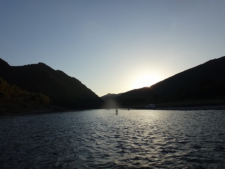 | 夕方こんなのが8匹。日置川のいい締めくくりになりました。 | 5時の「良い子は帰りましょう」放送の後、お日様が西の山に沈むと川は一気に秋を感じる風景に。日置川終幕です。 |