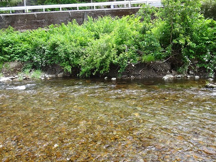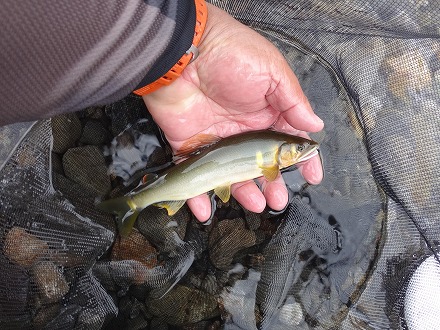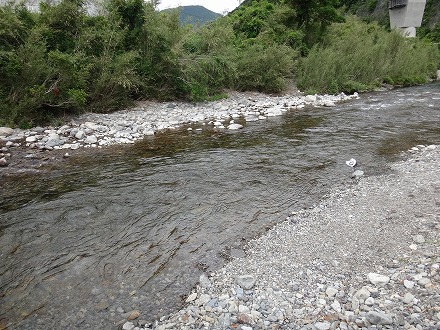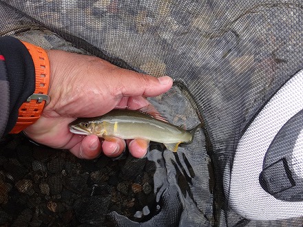 | 追わない鮎のスイッチオンを探り当てるべく再び大内山川へ。それでも厳しい下流部に朝から入る勇気はなく、ハルさんのナビゲートで比較的釣れている上流部へ。途中人気の不動野橋から川を見てみる。居るところにはグチャグチャ居て、それも早い動きで集団食みしています。その他の流れには青藻が付いて鮎見えず。ポイントが10m違えば天国と地獄。これが今現在の状況のようです。 さて早起きしてきたのもこの天国に舞い降りるため。ハルさんが解禁から天国モード継続中のポイントに案内してくれました。始めて入る場所。宮川と違って駐車場所から川まで近いのがありがたい。確かに周辺石色が綺麗です。案内された天国でやってみましょう。 1人で満員の小場所。石がしっかり入った水深膝程度の平瀬棚です。上はザラ瀬、下にもザラ瀬とちょっとした深み。跳ね鮎なし、姿も見えない。昨日の暴風がまだ残っていて日もあたらず寒い。しかし水温は高いようで水の方が温かく感じる。ハルさん曰く10過ぎれば追う!それまでは我慢です。 鮎は見えませんがおとりが良く動くので野鮎は居るようです。ぼちぼち掛かります。前回平瀬橋上流での群れ鮎は中層に浮いていて掛かっても逆さ針が切れないことがほとんどでしたが、ここの鮎は川底を集団で動き回って食んでいるので、背掛かりが多く、当たりも強く面白い。やっとお日様が背中に当たりだすと掛けられなくなった。おとりの動きがグイングインと感じるような操作では掛からない。でもフリーは飽きてきてどうしても引っ張ってしまう。狙った筋では一切追わず。フリー状態で再び狙うとぼちぼち掛かる。そして10時を廻るとギュン!と初めての追いを感じた。するとどこに居たの?というような良型、追星ばっちりの肩張り鮎が掛かってきた。しかしそんな鮎は多くなく6匹追加の計22匹で終了です。上がり際に石色が良いところを探ってみましたが反応なし。石色判断が難しい大内山川です。 そこで1日我慢すれば4〜50匹になりそうな感じのポイントですが、引き舟を1箇所において同じ場所でおとり交換するので、その場所が猪が掘ったようにくぼんできました。猪と間違われると危険なので、前回釣行で鮎は居るのに追わない難しい下流へ再調査です。 阿曽大橋からさらに下流のおとべポイントへ。道中すごい釣り人でしたが、ここは広い流れの瀬肩にお1人だけ!風がむなしく吹き抜けて行きます。ハルさんとゆっくりランチをしていると呼び水となったのか続々と釣り人がやってきます。5名入られました。掛かってくれればやる気になりますが。その後4名ほどさらに増えましたが、暫くすると皆さん続々と上がっていきました。 さてここでの狙い目は下流のザラ瀬です。ハルさんの御漁場を釣らせてもらいます。私も好物のフラットなザラ瀬。引かないように瀬の中で留める。2回底バレ、3匹目で取り込めた。16pほどですが、追星が出た精悍な感じのいい鮎です。これなら掛かりそう。しかし期待したほどの数は居ないようで、少しずつずらしながら丁寧に探ってやっと掛かる程度。後半はほとんど掛けられず4時間近くやって12匹で精一杯でした。盛期には好ポイントになる瀬落ち付近を最後に探ってみたものの追いはない。意地で1匹掛けるのが精一杯でした。釣果は前回と同じ35匹。満足度は上がりましたが。 週末はいよいよ長良川解禁。それまでにもう1日水曜日に行けそうです。お祭りモードがそろそろ落ち着いてきた宮川にしようかな。 |