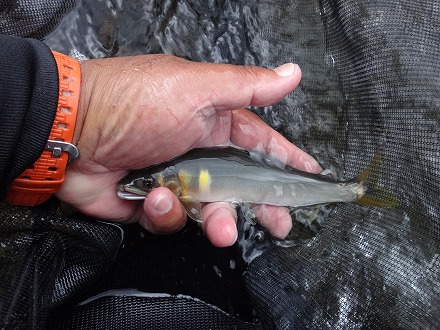 | この週末は郡上で楽しもうと思っていましたが増水でアウト。宮川上流も上向き、下流も気になる、大内山も安定ですが、今年はサイズが良いと噂の安曇川へ行ってみることにしました。 道中、安曇川上流の葛川エリアが本日解禁で多くの釣り人が入っています。日券3000円の朽木エリアはどうも厳しいらしい。日券2000円の安曇川廣瀬漁協エリアは数、型とも良いらしい。行き先決定、2007年以来11年ぶりの安曇川廣瀬です。2005年、2006年と良く通い、数釣りを楽しませてもらったところです。 朽木にある谷口おとりさん(おとりが天然鮎で500円です。)で、「常安橋周辺が釣果が出ていたが、水が出て鮎が動いたと思うので、上流の両台橋や堰堤下流がいいと思うよ」と丁寧に教えていただき、素直に従う。 まずは両台橋上流に立つ。どんなところが好ポイントだったか覚えていません。本線の流れ手前にある細流れも石色が良いのでそこからスタートです。狙い通り3匹掛かる。ここから本線を攻める。良い流れですが、待って待ってやっと掛かる感じ。厳しいのか?心配ご無用、9時半頃になると追いがきつくなってきた。朝ダメだった流れも再度探ると入れ掛かり。それに今までの廣瀬の概念を覆す良型ばかり!しかも数もそこそこ釣れる!どうなっているのでしょうか。11:00頃まで28匹、さすがに釣り人も多く、動けなくなってきたので移動します。 谷口おとりさんの教えを頼りに、一つ上の堰堤下流ポイントへ。ここもつり人多いですが、お昼で空いたザラ瀬で入れ掛かりになる。きつい流れでもしっかり追い鮎がいて面白い。おとりが良い状態で流れに馴染んだら、その状態で待てば追いがあり掛かります。おとりが落ち着かないと掛かりません。泳がなくなったらすぐおとり交換!これが一番効きます。3時頃から遠雷ゴロゴロ。雨雲も近づいてきたので4時に終了しました。午後は35匹。上出来です。 久しぶりの安曇川廣瀬でしたが、入川口看板も整備されて良い釣り場になっていました。4WDなら河原まで行ける場所も多く、川相も比較的おとなしいのでシニアでも楽しめますね。私はシニアが動かず釣っていて帰られた後を攻めて楽しませてもらいました。イケナイ釣り人です。 朽木へ戻り谷口さんに釣果報告。朽木の水は少し濁りが入っていました。上流で結構降ったようです。 朽木てんくう温泉でまったり。道の駅で就寝します。さて明日も楽しむぞ! |