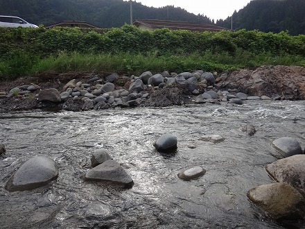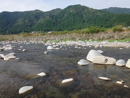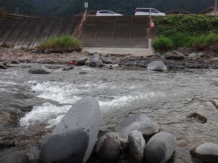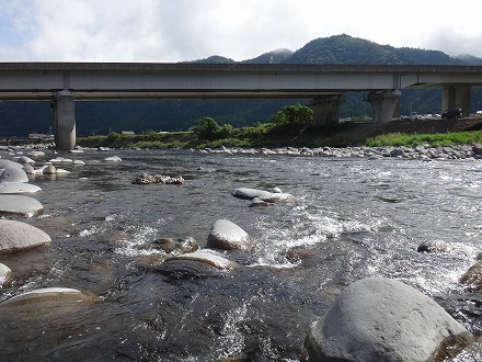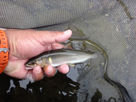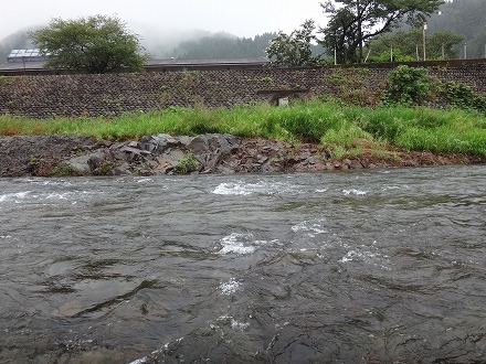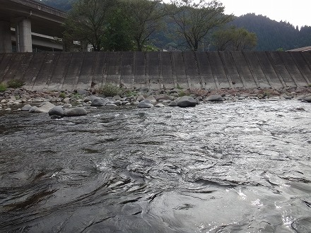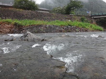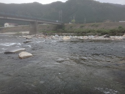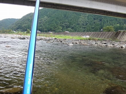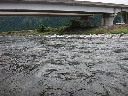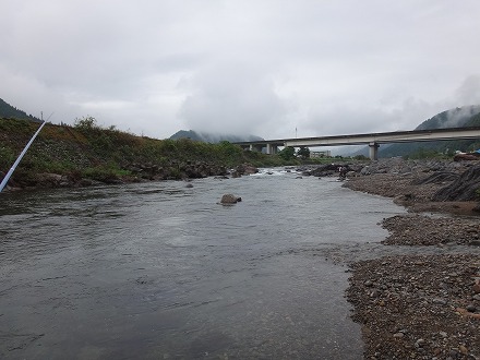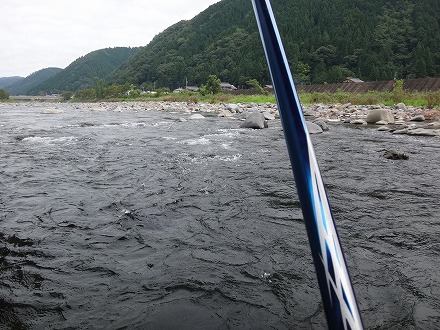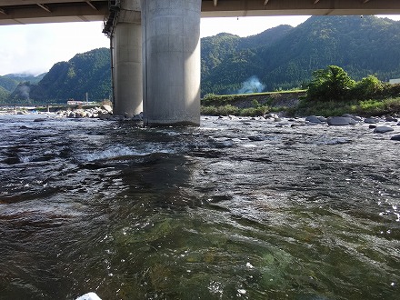 | 大和で反省会を行い、地元名人にどこが良いかアドバイスを求めます。和合橋と高速道路橋の間の流れが大きく変わり、今まで細流れだった左岸の流れが良くなったのに、釣り人は右岸側ばかり攻めているので狙い目ですよ!とのこと。翌日は素直に従いそこへ。 和合橋上の右岸筋は超人気ポイントで、この日も早朝から1日動かない方たちが入っていました。左岸筋は皆さん渡っていくだけ。斉藤師匠は高速下付近へ。自分は階段前の流れからやってみます。岩盤と石が混じっている流れ。青黒い速い流れで飛び付の存在を確認する。10分、15分、掛からん。跳ね鮎が見えた浅場を探ってみます。群れ鮎におとりが反応して動く。ピュッと動くと掛かる。小ぶりですが良く肥えた鮎です。おとりが変われば簡単。ポロポロ掛かる。良いサイズも混ざるが、流れを泳ぎ上がっても追い鮎はいない。7、8匹おとりが取れたので、もう一度瀬を探りに行く。上流高速道路橋下まで攻めあがるが1匹も掛けられない。特にピーヤ付近は石色ピカピカに見えるが掛かりません。斉藤師匠は右岸筋へ動いてポツポツ掛けています。 左岸の流れを諦めきれない自分は、今度は階段より下をやってみる。いかにもな棚、鮎はチラホラ見えるが追われる反応無し。ふと上の道路に目をやると知った車に知った顔、おぉ!前日ジャパンカップを手中に収めた楠本名人じゃないですか!車を止めてくれたので、竿を置いておめでとうを伝えに! 折角なので「優勝者が語るジャパンカップ2018ファイナル」インタビューです。今回の那珂川は非常に厳しく、瀬でまともに掛かるブロックは少なく、決勝エリアも含めてチビ鮎や遊び鮎を如何に繋げるか、というのが課題だった。 しかしながらまともに掛かってくる鮎も少なからず居る。それに惑わされずに的確に1匹を拾っていけたか、が勝負の分かれ道だった。決勝は下流エリアが比較的釣れていたので、高橋名人が下流スタートを選択。左岸側水量計付近の瀬を攻める。上流スタートを選択した楠本名人は下流の木全名人が開始早々良型を掛けるのを見ながらも浅場での丁寧な釣りを崩さず4匹掛けた。中流でも3匹掛けて繋ぐと、最終下流エリアでは、インターバル時間にぐるっとエリアを見て周り、二人が攻めた後の左岸水量計前は捨てて、下見時にも、今も鮎の存在を確認していた右岸筋で勝負に出た。狙い通りか掛かった1匹目でこれは掛かると確信、結局この選択が正解で6匹をここで掛け取り準優勝高橋名人に5匹差をつけての優勝! 楠本名人のスタイルは、徹底した下見と、その情報を駆使しながらその場に応じた多彩な試合運びです。勝つための釣りができる。やはり全国の頂点に立つような名人たちは、それを狙って取りに行くために様々な努力をしている。これを直に聞いて、自分の前日の大会が中途半端な下見で中途半端な試合だったと反省した次第です。 貴重な話を1時間ほど聞かせてもらって、よし、釣ってやるぞ!と瀬の続きへ。さっき立っていた右岸筋がキレイだったので、どちらかと言うと流芯になる左岸筋に立って中洲側を狙う。すると流れとタルミの間でギュン!やっと追われた!なんとなく感じが分かり攻めて行くと4連発で3匹取り込み。サイズも良くなった。ここで昼食。師匠はトロ場でも連発して16匹です。 午後はさっきの続きです。今度は右岸中洲側から。その周辺は掛かりました。特に和合橋左岸下付近は小型も混じりましたが良く掛かった。午後3時。高速橋上流へ行ってみる。西河橋からの広がった流れも掘れて良い筋がいくつも出来ていますね。ピーヤから100mほどのところから開始。流れを引いても掛からないので、トロ瀬でおとりを下流に送り込み、おとりを扇状に引き上げて探っていくとデカ鮎2匹掛かった。それを持ってピーヤ付近をまた攻めるがなぜかここでは掛けられない。最後、階段少し上の今日はまだおとりを入れていない瀬に入れるとギュイン!夕方だったからか、竿抜けだったからか分かりませんが最後に良い感じで追加できました。結果は30匹。思ったより良かった、と言う感じです。斉藤師匠は31匹!常連さんが掛けていないトロ場でも1人、竿を曲げていました。 郡上ですが、鮎のお盆休み?も終わり、また活性が少し出てきたようにも感じます。いよいよ終盤突入、良い釣りをしたいですね! この日、午後一は小雨だったのでカッパを着ました。2011年マスターズで頂いた貴重なカッパです。雨傘をドライヤーやアイロンなどで暖めると、細かい起毛が戻って撥水性が復活すると聞いたので、カッパでもそうかな、と少し前にウタマロ石鹸でよく洗い、ドライヤーで丹念に暖めて復活作業をしておきました。結果、効果抜群です。新品以上かと思うほど雨をはじく!ゴム製はダメですが、ゴアテックスなどなら効くようです。皆さんもお試しあれ! |