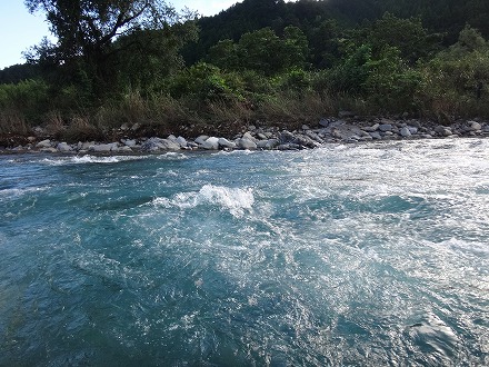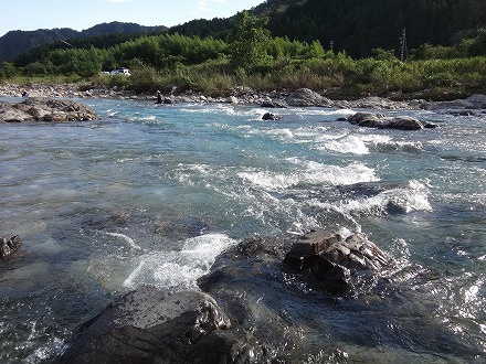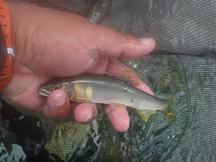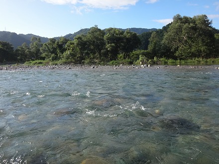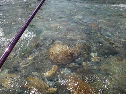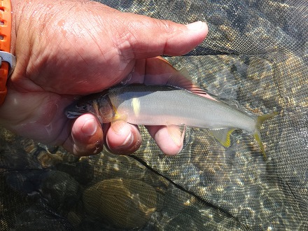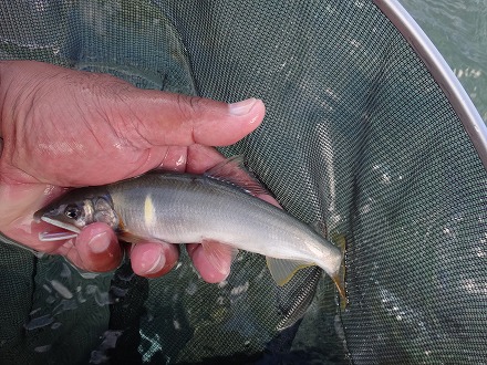 | むりやり泡へ引きずり込んで待つ。 | ドカ〜ン!午前中の鮎とは違う川みたいな鮎。 |