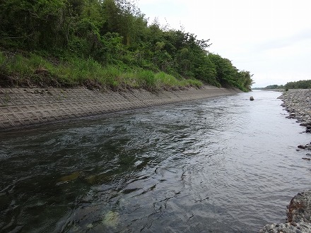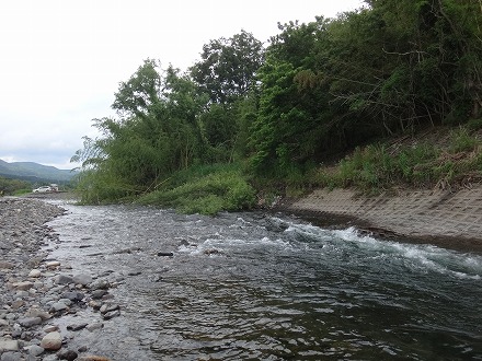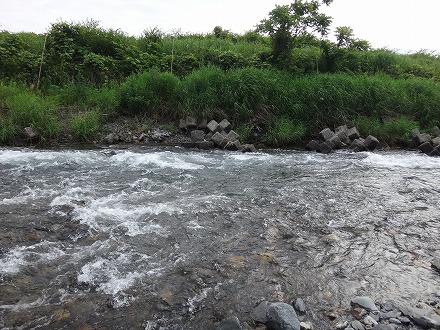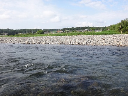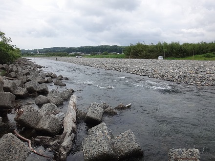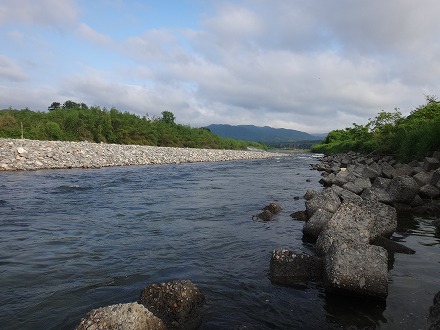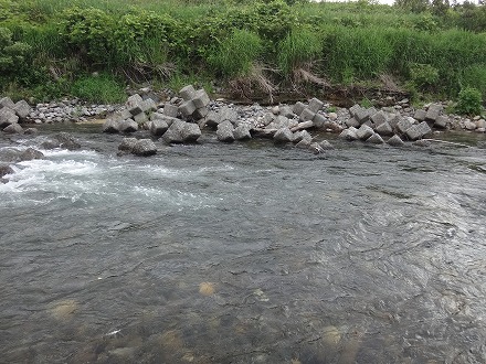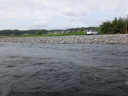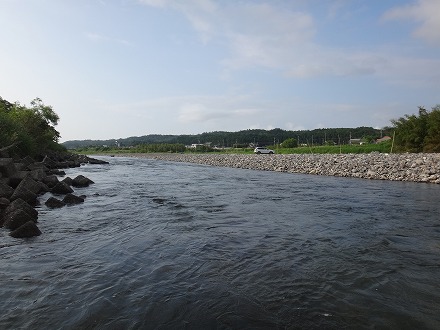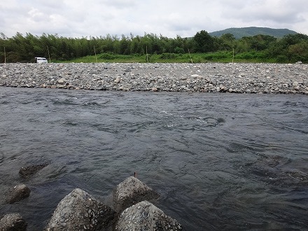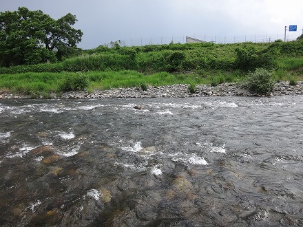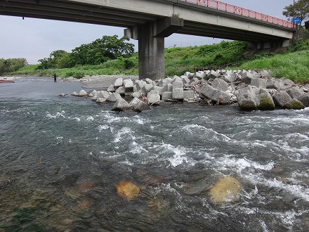 | 夕方混雑していた広瀬橋も空いていたので少し竿を出したが、雷と強風で見切りをつけた。 | 広瀬橋直下の上。ここも良さそうだった。5分だけ触った。 |