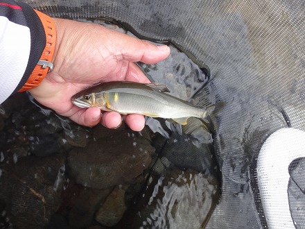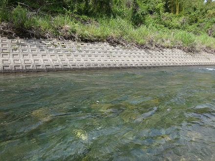 | ここだけで結構掛かった。瀬との境界ぎりぎりまでおとりを入れます。 | アベレージサイズ。コンディションも良かった。 |