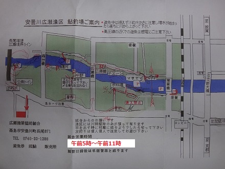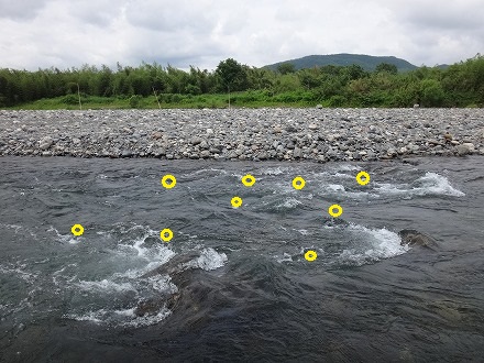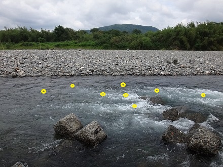 | 43匹は釣れていましたが、2匹逃がしてしまいました。バラシは2匹、ケラレは結構ありました。 | 広瀬ポイントマップ 拡大します。 |
