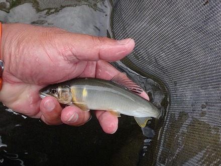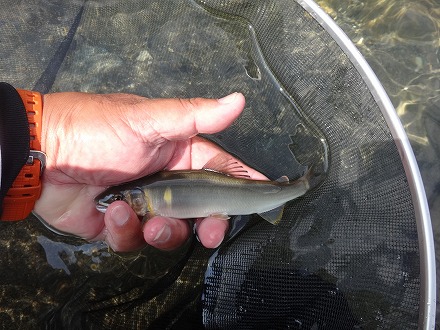 | 平日釣行。高速を使わない安曇川広瀬へ。解禁から3日間、榎本師匠、引き継ぐように夏は川漁師さんが行っているので厳しいらしい情報満載で向かう。谷口さんで情報収集。「瀬落ちがいい」。現場で昨年楽しめた「長尾」を覗く。川が変わって魅力的に見えない。広瀬橋から川を覗く。下流には既に何名か竿を出している。釣れる所が限られていて早くから入っているのか?川を見ていると組合長が見回りに。「釣り方次第では釣れる!」、橋から上流に見えるポイントを指して「あそこも左岸から釣ればエエンヤ!」と言う。 素直に従いそこへ。「中野」というポイントです。一応川を見て、瀬落ちの開きからやってみる。もちろん左岸に渡った。左岸は小砂利で右岸側に石が並ぶ。エエ感じに見えるが掛かったのは大きなウグイ。ポイントを下流へずらす。少しヨレがあるところ。ゴニョゴニョ。白い鮎が掛かった。これは群れ鮎っぽい。ここは違う。瀬の頭へ移動。おとりが弱ってきているが、2匹目は温存し速い流れに丁寧に馴染ませて探っていくと、2つ目の棚でギュン!と掛かった。黄色い良型だ。これはまだ掛かる。すぐに左岸へ渡る。8時半から1時間ほど良く掛かった。良いおとりで開きも確認するがやっぱり掛からない。10時になると釣り人も増えてきたので場所変えです。 広瀬橋へ行って夏は川漁師さんたちとランチ。新じゃがを使ったジャガバターをご馳走になり充実したランチになる。「中野」への進入路でドロドロになった車も浅瀬で洗いきれいになった。広瀬橋周辺は大人気です。見ているとポツポツ竿も立っている。 午後はそのまま河原を少し下って「チェーン」というポイントへ。いい「瀬落ち」がある。ざっと下流までおとりを入れてみるが、反応が出たのは瀬落ちから50mほど。やや深くなっている平瀬が駆け上がりになっていくところまでです。それから下流は厳しかった。小さい瀬落ちですが、鮎は濃く良く掛かりました。 やっぱり現地での情報はありがたい。素直に従い予想より楽しめました。明日行っても同じだけ釣れるのか、と考えたら自信はない。情報に助けられた釣行でした。 安曇川広瀬ですが、天然遡上がまだ来ていないようで、石色はどこでも綺麗なわけではなく、ビリも掛かりません。瀬肩の浅いチャラでもそこそこ釣果は出ていたようです。 |