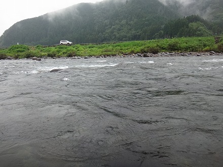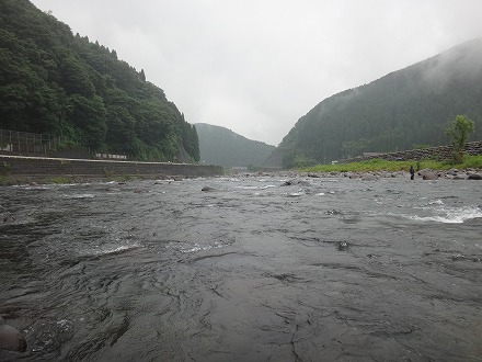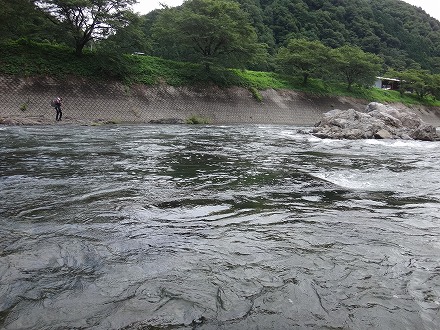 | セミファイナル終了後、3時から西河橋上流へ。水位が下がってトロは厳しくなっていて、左岸岸際で竿が入っていないところで掛かった。でも良いサイズです。 | 短時間でしたが楽しめた。後半戦へ続く! |