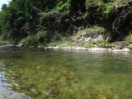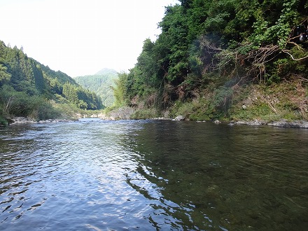 | 大会後は板取川温泉でさっぱりして郡上のバローで買出し。やっぱり会計は6,000円オーバー!この日は大会でも6,000円で大出費でした。和良川で漁師をしていた斉藤師匠と和良の道の駅で合流。12匹しか釣れなかったそうですが、9,000円近くの売上げ!和良鮎スゴイですね!夕立があり少し涼しくなりました。 翌朝、馬瀬川下流漁協大会へ。こちらも当日受付です。予選はCブロック。乙鳥橋下流の「ほうき瀬」という初めて入るポイントです。各ブロック18名くらいで3割勝ち上がり。入選順が2番と良かったので、すでに来年も中スポ出場を決めている丸山さんが教えてくれた鉄板ポイントへ!途中滑ってコケて左ひじ強打!竿は折らずになんとかポイントへ。いい棚です。気配濃厚。おとりを入れると鮎が多いことが分かる。1匹目は20pのおとり頃が速攻で掛かった。3匹目までは早かったが、4匹目でハリス切れ。掛かる鮎は全て20〜24pとデカイ。針は小さ目が良い感じだったので全の6.5号の使っていましたが、ハリスがフロロ1号の組み合わせしか用意しておらず、下馬瀬のデカ鮎にはちょっと厳しかったです。イカリのすぐ上で切れます。逆さ針を浅めに打って、移動式鼻管の編みこみも緩めにしてショックを吸収するようにして対応します。 自分の考え方として、大きなおとりの時や流れが強いときには掛かったときの抵抗が大きいので逆さ針は浅めに。深いと身切れや鼻管外れに繋がりやすい気がします。おとりが小さかったり、流れが緩いときには逆さ針を深く打って抵抗を大きくし、針がしっかり刺さるイメージをもって打ち分けています。それでも底バレしたり身切れしたりするので結局は悩み続けるのですがね。しかしただなんとなく打つよりは一応根拠を持ってやってみる、ということが大切だと思います。 さてその後はポツポツの掛かりで残り1時間で込み10匹まで伸びました。途中動くタイミングをとても悩みましたが、鮎の多い気配と、おとりが変わると続くこともあって結局3時間動かずその「鉄板ポイント」を死守。残り1時間で3匹追加できて込み13匹で、3位タイで久しぶりの予選通過。斉藤師匠も通過してともに決勝戦へ。 ポイントは一昨年の優勝ポイントです。橋上から見ると石色悪く見えますが下馬瀬は青黒く見えるところに鮎が多く感じるのでここならOK!開始すぐに3連チャン!予選同様良いスタート!そしてまた4匹目がハリス切れ!同じ失敗を繰り返してしまう。しかし6.5号で1.2号ハリスを持っていなかったので仕方ない。そこからは針を7号に変更。ここも予選同様鮎は多い気配ですが少しでも泳ぎが悪くなると反応が落ちる。予選からおとりを補助するような操作が良かったので意識してやるが、ついつい焦っておとりを動かしてしまう。そうなるともう悪循環です。スタート15分で3匹掛けたのに残り1時間45分でも3匹だけ。立て直せないままに終ってしまいました。 優勝、準優勝は昨年と同じ小寺名人と山本名人でした。3位は予選から好調だった流心会の小林さん。ルアーでのサツキやデカアマゴ釣りもすごい名手だそうです。大物賞は斉藤師匠が予選で釣った26p!1pで千円の賞金が懸かっていたので26,000円と来年の年券もゲット!1匹で36,000円相当の「大物」ですね!前日の和良と合わせて2日で、自分が10日の漁師生活で稼いだ水揚げとほぼ同じ!参りました。 さて今年も下馬瀬は鮎がとても多い感じでした。それでもいつもどおりデカイ。例年の下馬瀬だと下手に動くより鮎が居るところで粘ったほうが良いようなイメージだったので動きませんでしたが、予選では瀬を動きながらまっとうに攻めていた遊鮎遊の田中君が同じ込み13匹を釣っていました。前日の板取川上流大会もこの日の大会も難しく考えすぎて完全に「大会の釣り」になっていました。普段の釣りの延長に大会があって、自分の釣りがマッチしたときには結果が付いてくる、と常々言い聞かせていても同じ失敗を繰り返します。お盆が過ぎれば鮎も終盤、何か掴んで終りたいですね。 |