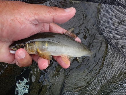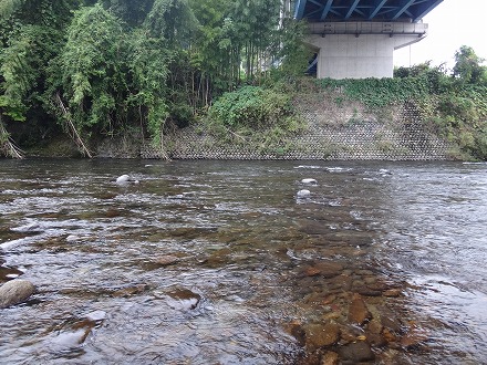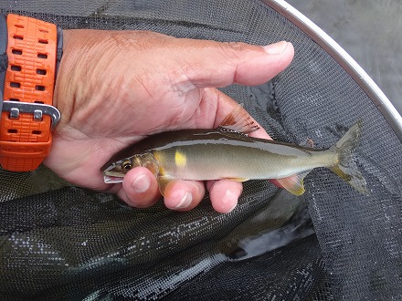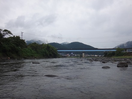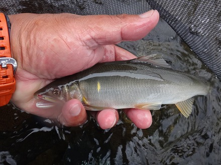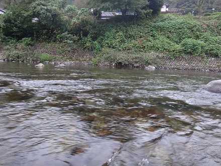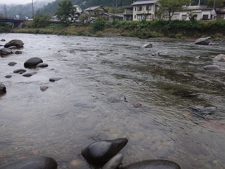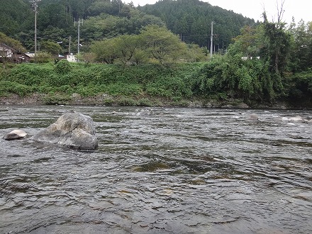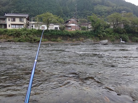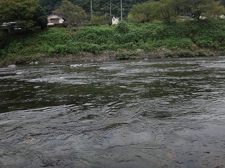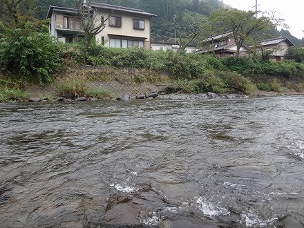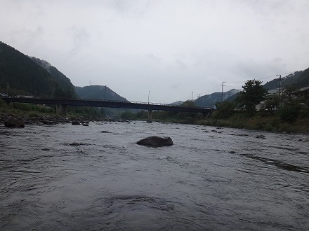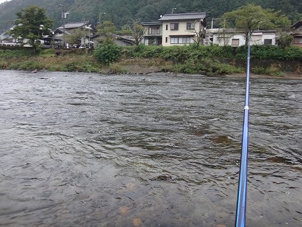 | 土日の休みを取ってありましたが台風17号の影響で雨の予報。この雨で水が出ると郡上も厳しくなると思い、雨覚悟で出かけた。丹羽おとりさんで今シーズンは最後かも、と挨拶し、専用区が残る吉田川出会いへ。今日は五町の瀬をじっくり攻めてみたかったのです。それは9月の第2週に、郡上の某名人が五町で70匹以上も掛けた!と聞いたこと、前回の鮎心会例会で、この辺りに鮎が多いなと感じたこともあって確認したかったのです。前回は釣り人が多く好きに動けませんでしたが、今日なら雨予報で人は少ないだろうと踏んでの釣行です。 丹羽おとりさんを出る頃は少し雨が落ちていましたが、吉田川出会い右岸へ来た頃には雨は止んでいました。水位はまた下がって攻めにくそう。五町の瀬へ向かう。前回良く掛かった浅場をチェックしながら狙いの場所へ。広いトロ瀬の右岸側へ。石が頭を出した流れです。 前回の釣行で、岸際でも大きめの石や少し掘れたところに良い鮎が付いていたのでそのようなポイントが多い場所を意識して立ち位置を決めた。スルスル〜っとおとりが出て行くと野鮎の反応が出てギュイン!掛かった。元気なおとりはコントロールできないが、勝手に野鮎が居るところへ行ってくれてギュン!これをどれだけ維持できるか。バレや根掛かり、エビでリズムが途切れる。なるべく勝手に泳がせないように糸はメタマグナム、目印は水深ちょうどくらいにしてオバセを出し過ぎないように工夫して、少しは維持時間が長くできた気がするが、どうしても止まる。それと泳がせの場合、その場所に掛ける時間が難しい。移動の根拠が持てない。今後の課題だ。 勝皿橋下流の瀬尻は反応が落ちた。それ以上瀬を攻めても無駄かなと考えて平瀬に的を絞った。じわじわ引いたり泳がせたり、石の横は強引に引き上げたり。2、3匹掛かって間が空く感じでポツポツ追加していく。この間が名人との違いなのだろう。あそこにも付き鮎居るだろうな、とポイントが見えてもそこを攻めきれないもどかしさ。午前中は勝皿橋から高速橋まで釣り人自分だけの貸切でやりたい放題でしたが、21匹掛けるのが精一杯。某名人ならもっと掛けたな、と感じつつ昼休憩。タイツなので寒い。 冷たい弁当食べて午後の部開始。前回ちょうど昼頃から良かった吉田側合流のトロへ。10分ほど探ったが、先週とは何か違う。すぐにやめて五町の瀬へ。高速橋直下辺りのチャラから開始する、石の間を泳ぎあがれば掛かる。水深が浅い所は小型も多くて、なにか群れ鮎の事故掛かりが多い気がしたので見切って瀬を探る。しかし瀬は反応薄いので、瀬脇に的を絞っておとりを通す。午後開始1時間はペースを作れなかったが、午前と同じように流れに石が頭を出しているポイントでペースを掴んで楽しめた。最後は瀬を引き倒してビリが掛かって終わり。 スタートは渇水で鮎の皮も硬いかと考え、針を細軸の刻にしたが、ケラレが多発。伸びることもあって結果だが早く変更すべきだったかも。全に変えてからは歩留まりは上がったが、ケラレは多く感じた。途中一角も使ったが相変わらずケラレ、底バレは多くて苦労した。 五町周辺ですが鮎は確かに多い。某名人の様には行きませんが、ポイントは少しだけ見えてきた気がする。今までと違った見立てが少し出来たので良い釣行でした。 釣りの後は郡上八幡で地味噌を購入。キッチントットで食べると美味いので大黒屋の味噌と聞いて買い求めました。冷え切った体をベトコンラーメンと子宝の湯で温めてゆっくり岐路へ。天気も持って有意義な一日でした。 |