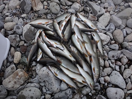 | 釣果は36匹。うまくやればもっと掛かったように感じる。リズムが途切れたときの戻し方が課題。 | サイズも揃っていました。 |