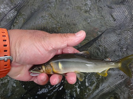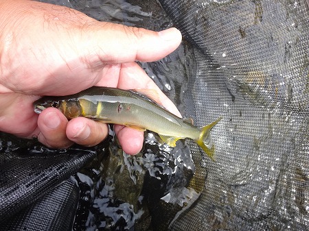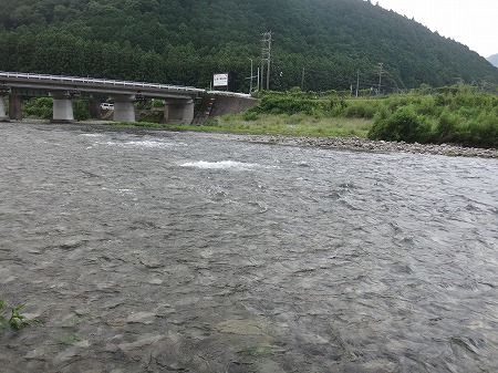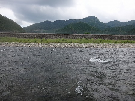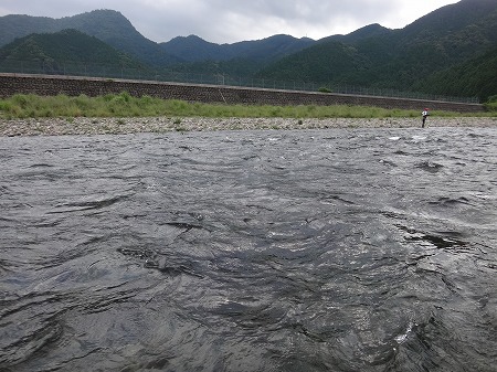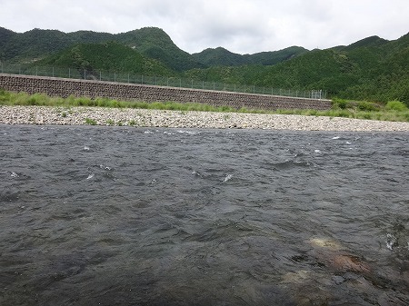 | 水量平水、良い感じです。棚の浅いところから始めると天然遡上らしき鮎が3連発!これは!と期待するが。 |