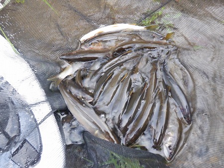 | 岩船橋上下流 | 24匹 | シマノ競FW2.6ソリッド穂先 9.0 | フロロ0.8−5m | 無し | Mステージ0.05号-5.0m | ナイロン0.4-15p |