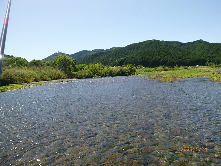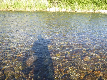 | 夕方はこんなトロ瀬をゆるゆると引く練習。2時間で9匹でした。 |