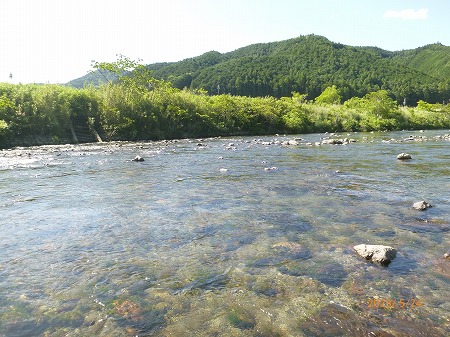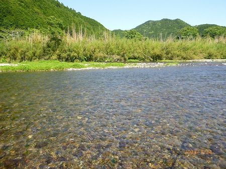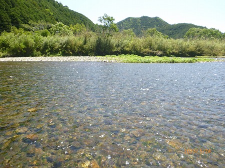 | 深いところでひざ下まで。大き目の石や、ちょっとした筋に鮎が付いていました。 |