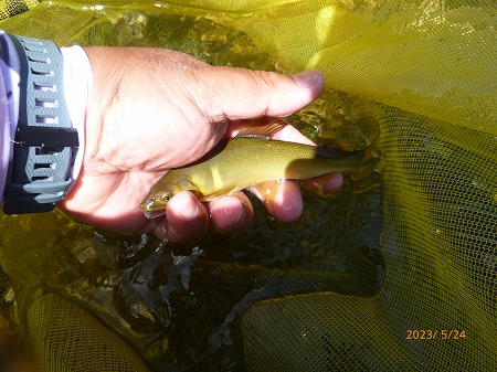 | K名人がやってきて一緒に昼休憩。ビール飲んでしまったので同じところで開始。それが良かったのか鮎のスイッチが入り、ポツポツ追い出す。 |