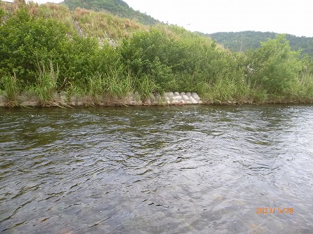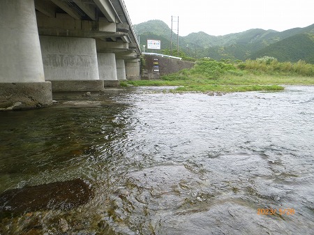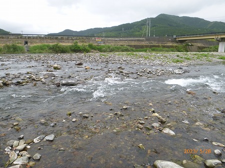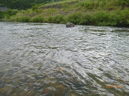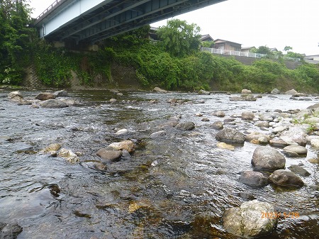 少し上の水深が有る流れもダメ。1時間で移動、岩船橋下流へ行くが、石色が悪くて10分でやめた。 |
