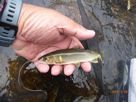 この日は流れてくる鮎も散見。この時期の病気の様です。これがあるから早期解禁ですからね。漁協の狙いは正解です。厳しいです。 |