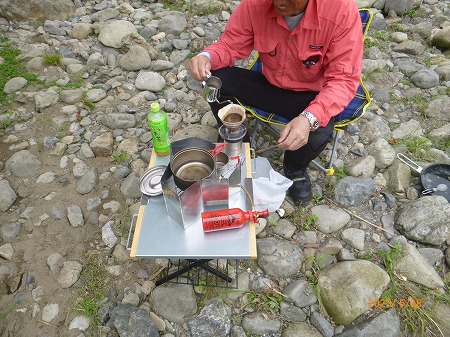 | どんちゃん騒ぎのどんちゃんに至福のコーヒーをいただく。日置川や熊野方面の釣行が多い方なのでてっきり和歌山の方かと思っていたら、まさかの隣町でした。 |