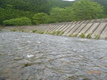 小場所で追ってきた。身の硬い良い鮎でした。11時頃まで6匹。上の方の流れは川が白くダメ。岸際が奇麗ですが、遡上の小型が奇麗にしているようでまだ追わない。 |