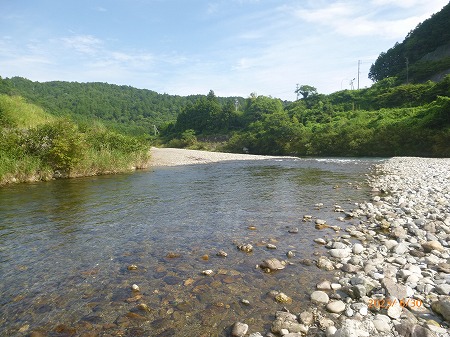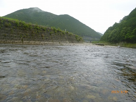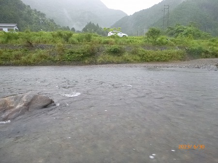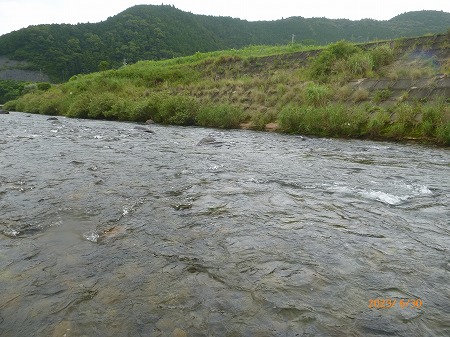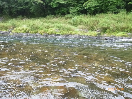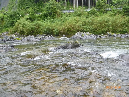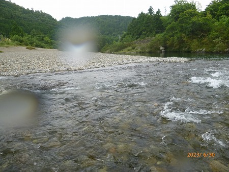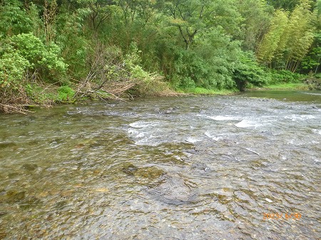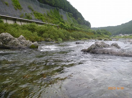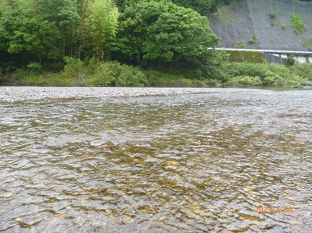 | 掛かるのは竿抜けだけなのか?左岸側の2畳ほどだけの範囲で掛かった。 |