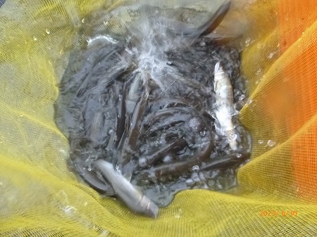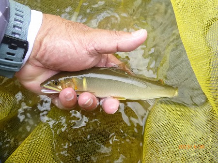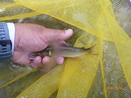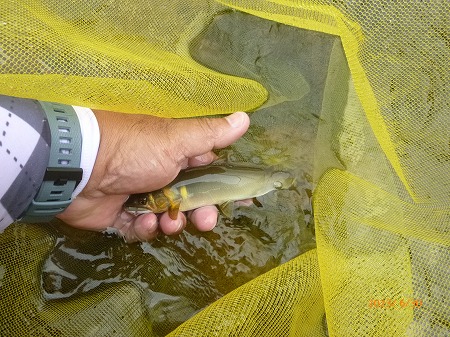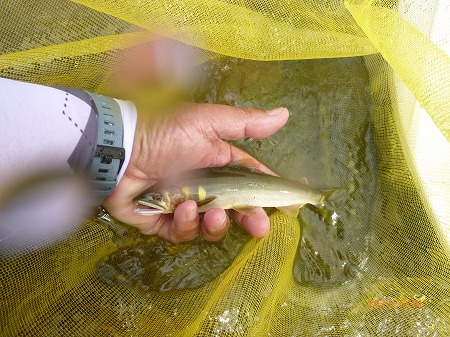 | 掛かる鮎は天然遡上のきれいな鮎。17p位の良い鮎が多かった。 |