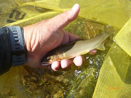 | 久しぶりに鮎心会メンバーの集まりです。場所は長良川中央戸田裏。近くてイイ。ここは広くてポイントバリエーションも多く好きなところです。今回も先週の大会と同じく、あまり動かず如何に掛けるか?を試したいと思います。但し大きいのが出るかもしれないので竿はバーサトルH2.75です。タープを張って8時頃開始。深瀬からの駆け上がり平瀬から。まずはあまりたち込まず手前から丁寧に。流れの中でテンション抜き気味を強く意識して待つ。気配が出てビューン!20p位のきれいな鮎。大きさの割に良く引きます。替えて出すと2匹目もすぐに掛かった。ええ感じや!3匹目も続いた!プチン!エムステージ0.07の途中で切れた。大会や郡上で散々使ったやつだったので傷んでいたのでしょう。また1匹目の天然で探る。チビが1匹掛かり、それが良い奴を釣れてきたが、それをおとりにしてまたドンブリ!アカン!ペースが掴めず掛かりも遠のく。11時まで8匹くらいか。最後に掛かった野鮎を使わず午後用に取っておく。廻りは結構掛かっていた。3時間ほど休憩?宴会?して朝と同じポイントに立つ。朝はドンブリ連発で調子が出なかったのでやり直し。とっておきの未使用ビンビンおとりを送り出す。すぐに掛かったが飛んできたのはビリ!で2匹とも飛んでった?はい、本日3杯目のドンブリを喰らう。付糸を止める編み込み上がカールしていたのでちょっと心配していましたが、まさにそこで切れていた。さらに!それをスプールに巻こうと咥えていたのに、あちこちの孔が緩みだしたおっさんにエムステージの細い糸をきっちり咥えるのは無理だったようで、スルッと流れへ。大損害。ドンブリするとほんとペースが狂います。なんとか持ち直そうと動きながら探る。ギューン!反撃の1匹や!ブチン!また切れた!いつも大会で新品を使い、その後はそれを使いまわしています。この日は使い古しのエムステージ0.07号4個が全部メタル部分で切れた。枝葉が引っかかってうまく取れたと思っていてもキンクさせるとやっぱり駄目ですね。1日4回ドンブリはなかなかないな。掛からない時間が長くて夕方チャンスタイム。少し下って榎本師匠ご漁場の瀬肩へ。浅場でまっ黄色が連発。ちょっとだけ溜飲を下げて納竿。残ったのは20匹でした。この日は全体的に活性高くて良く掛かっていたので、チャンスだったのにしくじりました。 さて翌朝。7時から開始します。昨日は散々だったので仕掛けはシモマゼで使ったメタマグナム0.09です。絶対に切れんぞ。エムステよりちょっと入りにくいのでおもり常用で丁寧に。朝2時間は良く掛かって、日が高くなるとこの日はなぜか低活性。11時まで14匹。斉藤師匠は一人だけ掛かっていて22匹。昨日はお昼ごろも良く掛かっていたのになぜか厳しい。天然鮎は気まぐれです。2時頃からカミナリ鳴ってきて3時前に納竿。午後は3匹しか釣れんかった。 中央ですが、鮎は多いですね。でもこのポイントでは荒いところはやっていないですが最大でも21p程度でした。ビリも掛かります。タイミングと場所次第では良い釣りができる感じです。 |