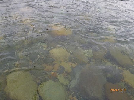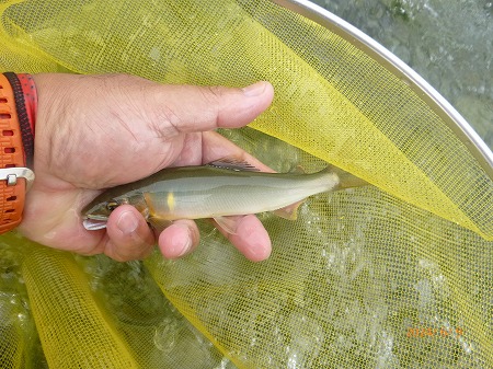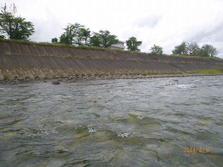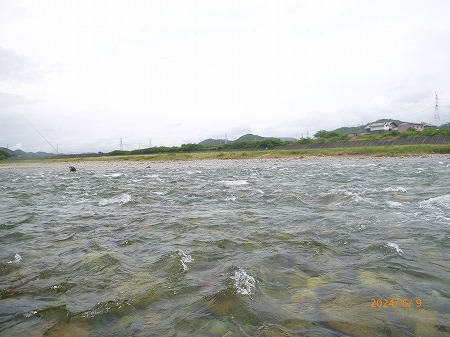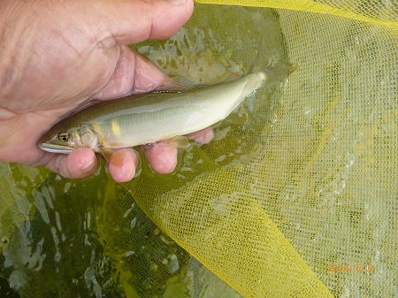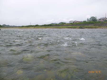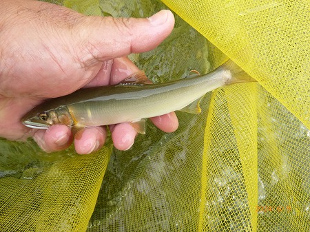 | 9日の晩は3人でしろとり美人の湯、きっちんとっと、カンミナラーメンの贅沢コース。消費したカロリーを倍補充して就寝。幸い心配していたムカデが出ることもなくぐっすり休んで翌日。師匠は遊鮎遊の例会へ。和人君と厳しい大和から逃げて下ることにします。 トンネル抜けて板取中央管内から見てみる。群れ鮎は確認できたが、石色はここも青グレー色。撃沈の予感しかしない。武芸川も見るが同じ色。中央本流へ。まずは鮎の瀬。左岸堤防から見る。ヘチではチビ鮎が多く見える。瀬肩でも鮎が跳ねる。石色はこちらも出来上がっていない色ですが、新垢は付き出しています。ダメもとでやってみることにする。 8時半開始時は貸し切りです。和人君は石色が良さげ見える左岸筋担当、自分は右岸本筋新垢担当。瀬肩から開始し、どんどん下がっていく。チチチッとビリ鮎が掛かる。めっちゃいい匂いがする。元気に泳ぐ。3匹目迄は全部ビリ。まだ早いか。おもり0.8号でちょうどバランスが取れて流れにとどまる。フラットな瀬肩からやや波立の流れに差し掛かった掘れこみでやっと反応が出始めた。ちょっと時間をかけて丁寧に。気配を感じて待つとキュン!ビリとは違う引き!郡上のプヨプヨと違ってシュッとした身が硬い鮎です。たまたまか?替えて送り出すと反応が多くなってきた。ギューン!沖へ走る暴走鮎!エエゾエエゾ!波立が多い流れ=大き目の石が多い流れエリアに入ってから付き鮎が掛かるようになりました。18pまでの小ぶりですがチョー楽しい!今シーズン初めて鮎釣った!感です。11時まで2時間半で15匹。戻るときに左岸筋も見ましたが、石色はこっちの方がよく見えるのに掛からない。やられまくっている感じには思えませんでしたが、分かりません。左岸筋テトラ前の強瀬も気になってましたが他の方が探ってさっさと切り上げていました。 午後は13時頃から入りましたが、1回蹴られただけで、雨雲が迫り30分ほどで早じまい。短時間でしたが、他の釣り人を気にすることなく広大な流れでのびのびと釣りができ、しかも良い当たりでキレイな鮎にも出会えて最高でした。 まだまだ出来上がっていない中央でしたが、石が大きい流れではそこそこ楽しめるかもしれません。梅雨明けから期待大です。 |