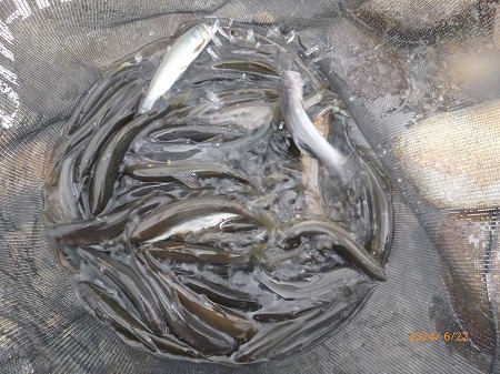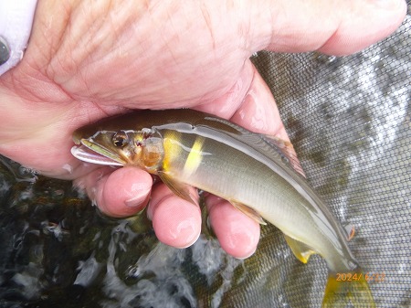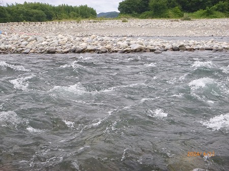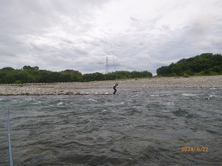 | 土曜日。薄曇りで時折日が差すお天気。水位は昨日より5pほど下がって濁りも無くなった。掛川の小澤さんも合流して3人でやる。和人君は下流の瀬へ。小澤さんは中盤の平瀬。自分は昨日のおさらいと流心狙い。昨日朝良く掛かった瀬頭。釣り返しには早くて釣り残しが掛かる。その下の荒瀬流心をやってみる。昨日の感触でおもりを付けると反応が悪くなったのでノーマルで縦波に入れる。石が大きい流れだと意外なほど底に入る。落ち着くところで待てばドーン!どえらい当たりだ。良型連発。タノスィ。 7時から10時までで多分10匹くらい。和人君も小澤さんも15匹ほど!なが〜い昼休憩。昨日は一人でまったりと。今日は釣り友とワイワイ。どちらもイイ!とてもイイ! 「あいみょん」は消えた。しかし今日は♪ブリンバンバンが流れずになぜか小梅太夫の「ばんだい♪か〜ぐ」がエンドレス。まぁエエか。 飲んで喰って昼寝して休憩3時間半(長っ!)、13時半午後の部開始。上の瀬廻りは釣り人が数名。昼休憩中、昨日気になった堰上トロ場に入った方が超入れ掛かり!しかもサイズも良さげ。やっぱりやっておけばよかったと後悔。堰は幅がかなりありますが、鮎が多く見えたのは真中の強瀬に落ちる付近です。 空いている平瀬で開始。広いポイントなので狙いが絞りにくい。こういったポイントはどうやっておとり操作が効くのかを考えながら探る。元気おとりが流れを泳ぎ上がっても当たりが無いので、付き鮎が少ないのだな、と思う。広く丁寧に探ってもポツリポツリ。4匹掛けて午前良型が出た深瀬を再度。2匹だけ。 右岸浅場へ。垢腐れでダメ。強瀬の左岸に和人君が入っている。行きたかったが、川切れずに断念したところ。この日も真中の強瀬はひっきりなしに釣り人が入っていましたが、全て右岸立ち。左岸側は昨日からサラ場。強い瀬へ掛けている。気持ちよさそう。フォッ、フォ〜!と雄たけびを上げながら入れ掛かり。右岸立ちのこちらは掛からない。が、4時20分を過ぎた頃、ガガガン!と掛かる。縦波のド芯に残っていた?いえ、どうもスイッチ入ったようで怒涛の入れ掛かりになる。50p程も出ている縦波に滑り込ませて、留まれば待つ、ガツーン!ブリブリばかり。小梅太夫の「ばんだい♪か〜ぐ」ボリュームアップ!ハァハァ!手前でもまっ黄色が引っ手繰る!至福の時間。日曜は38匹残っていたので、多分20連発位していたみたい。 日中散々釣り人が入っていたので、やはり夕方になってスイッチが入ったのだと思います。翌日増水だと掛かるときがあるけど、その要因もあるのか。中央番人の野倉さんが、今年の中央鮎はハイブリッドで時間が来ると狂ったように追うぞ!と言っていたのが当たってる。5時になったので止めたけどまだまだ出そうでした。 和人君は31匹。小澤さん25匹くらい。最後の入れ掛かりが無ければ負けてた。5時過ぎには予報通り雨が。いいタイミングで楽しめた。めっちゃリハビリになった良い釣行でした。 2日間、2023年モデル競FWH2.6、9mを使ったけど、ポテンシャルの高さに気づかされた。荒瀬で留める、気配を感じる、掛かってからタメる、浮かせる、抜くのバランスが最高。イエローグリップからずっと使っているけど、今作が自分的には最高だな。ダイワタイプSでおとりを完全コントロールする釣りにあこがれて買ったけど、技術が付いていかないので結果が出ない。タイプSを使いこなせる努力もしたいけど、FWで釣る方が楽しいな。さて次週はまた大会です。大好きな馬瀬川なので、自分の釣りができるよう楽しもう。 |
