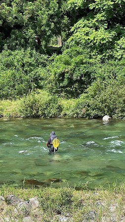 | 当日受付です。参加104名で4ブロック、1ブロック26名です。くじは本部前3ブロックの19番。エリアが広いのでほほ最下限に近い石碑前のポイントに狙いを定めて歩きます。ポイントまで15分、終了時帰着なので、20分前には片付、実質1時間40分程度。10匹釣れば安全圏ですが、時速6程度は必要なので結構シビアです。 目指すポイントは先行者あり!ガックシ。そこは掛けまくっている!少し上の瀬尻付近へ。流れで待つと2匹迄は掛かった。流芯を良い感じに攻めれたが追いが出ない。もう開始30分。ん?入りたかったポイントが空いている。しかし抜かれた後だ。上の瀬も空いた。陸に上がってしばし悩む。どっちが良いのか。 下流の入りたかったポイントへ。ちょっとした淵から大き目の石、水深が有る平瀬です。ギリギリ立ちこまないと右岸側は攻め切れない、垢が残る場所、そしてレモン色の流れも混在する最高のポイント。胸まで入って先行者が攻め切れていないだろう右岸側を引き上げるとギュン!良型です。その付近で数匹確保。ただ立ちやすいところから攻める流れは渋い。ちょっと強引に石横を引き上げるとギュン!と掛かりましたが遅い!右岸側の黒い石が並ぶ浅場を攻めると白いチビ鮎が掛かる。それ狙いに切り替える。ポツポツ追加。残り10分。もう一度深い強い筋を狙うが追加できず。それでも11匹掛かって込み13匹はブロック2位タイで2回戦へ。 2回戦は38名を4ブロックに分けます。抽選は初めての1番!エリアは2ブロックです。上は三角屋根別荘から下限はふれあい橋下流の通称水泳場肩までです。2回戦も時間内帰着なので近くが良い。ふれあい橋下流の平瀬は鉄板だが昨日今日と散々攻められているだろうから見送り、橋上流の平瀬、瀬を狙うことにする。 スタート時川切り禁止なので橋を渡って右岸からアプローチ。おとり配布のすぐ上、深瀬のたるみを狙う。石が少ないので鮎が居れば多数溜まっているし、ダメな時は粘る必要なしポイント。入れてみるが反応出ず。溜まっていないということは既に縄張り場所へ出勤した後です。 今日の馬瀬川鮎の現場はどこだ?昨日の感触を活かす。瀬の白泡へ。ギュギュ〜ン!鋭い当たりでまっ黄色。サイズは16p位。これは掛かるな。付き場がはっきり見えてきた。2匹目も速攻!サイズは同じ。スイッチ入ってる。一段上の棚の方がキャパが大きそうだ。その上には他の方が居たので先にその棚を攻めておこう。入れ掛かり4連発。魂の声がでてしまう。最高に楽しいぞ!この日も白泡好反応。水深、デカい石、白泡セットが当たり。一つ欠けると鮎が薄い。 残り30分となって帰着場所へ近づきながら平瀬を探る。数匹拾える流れに見えたが全くダメ。残り10分。もう一度4連発した瀬へ戻る。根掛かりすると取れない流れだったので躊躇したおもりを付ける。マイナスになっても今のままでは残れないだろうな、と考えて勝負に出た。これが良かった。攻め切れていなかった強い流れの筋で3連発!のこり1分で帰着。14匹釣れて込み16匹は18匹の方に続いての2位。次の方が15匹だったので最後の3連発で逆転できていたことになります。これで初のオーナーカップ全国へ。 今回は前日下見が良い感じで出来て、それを当日活かすことが出来ました。2回戦では全部まっ黄色の鮎で楽しかった。針も一角がバッチリで、歩留まりは高かったです。仕掛けも単線から複合に戻して攻め方がアグレッシブになり良かったです。有田は遠いですが、悔いのない釣行にしたいですね。 |