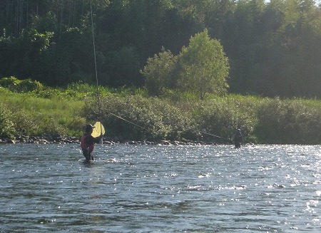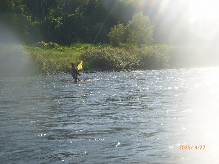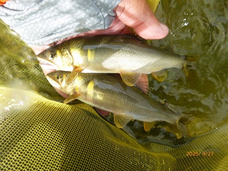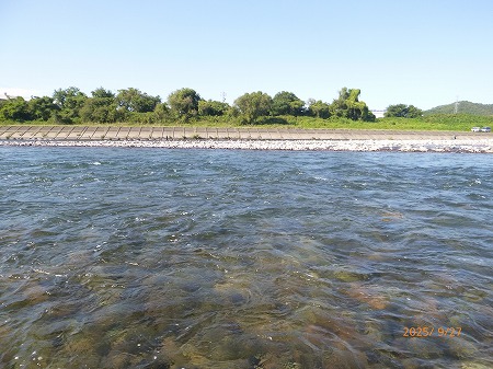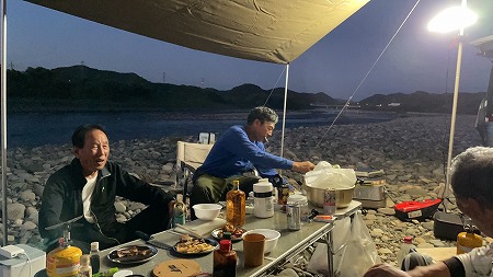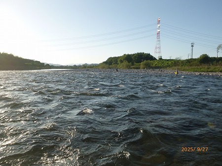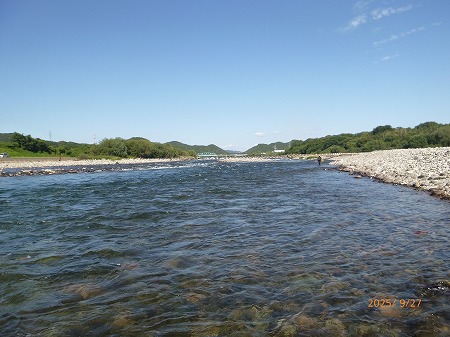 | 終盤の長良川中央戸田裏で鮎心会仲間と2日間楽しみました。 戸田裏左岸へはgooglemapで「保戸島グラウンド」で行けば分かりやすいです。グラウンドのバックネット裏を三塁側へ入って行けば河原です。「グランド」で検索を入れるとでません。「保戸島グラウンド」で検索です。ハルさんも参加でまずはタープ張。休憩が長いので日影は必須です。和人君がおとり調達へ行ってくれましたが鮎の瀬のマダム橋元屋さんは売り切れ。三平さんで残り少ないながらもゲットできましたが、養魚場が病気発症で今後の入荷は見込めないそうです。次行くならばガリで取らねば。長良川中央本線はルアー禁止なのでご注意を。 朝一は下流の瀬へ一目散。大き目の2〜2.5号おもりを打って引かないように探ってみた。ポツポツは掛かるが連ちゃんが無い。朝7時から開始して、開始から黄色い鮎が掛かったが、9時頃から上向き。下流の瀬だけで10名ほど居ましたが10時頃まで瀬はどこも好調でみなさん掛けまくっていました。11時まで32匹。サイズは15〜17pがメインです。 メインのお昼宴会は松阪とり焼きやらマルちゃん焼きそばやらで腹パンパン。昼寝して午後は2時から。目の前の深瀬を2.5号おもりで攻めてみますが、今シーズンここは調子が悪い。石色も良くないです。馬の瀬も反応薄く速いテンポで釣り下り2匹掛けただけで下流の瀬へ移動。朝やった場所のおさらいだったので渋く調子でない。4時近くになったので上がろうとおとりを引きずりながら左岸へ向かうとギュイ〜ン。黄色いヤツが掛かった。周辺で5連発。5連発目を受けそこなったので納竿にしました。午後は14匹。和人君は比較的厳しい上の瀬で午前も午後も20匹。最後の連発が無かったらまくられていたかも。先週と比べて鮎は一気に成熟してきた感じです。オスはおなかが軟らかいものが多かった。 夜は久しぶりに掛川のじゃじゃ丸さんも合流して宴会です。じゃじゃまるさん差し入れの静岡名物「浜松ギョーザ」と「さわやか」のニクニクしいハンバーグ!うまい!日が落ちれば涼しいので「おでん」の出番です。出来合いのおでんに具材追加すれば簡単豪華ですよ。追加には定番ウインナーや良い味出すカニカマがおススメです。〆は残っただし汁にうどんぶち込んで溶き卵で仕上げ、とろろ昆布、梅干しトッピングすれば飲んだ後には最高です。 |