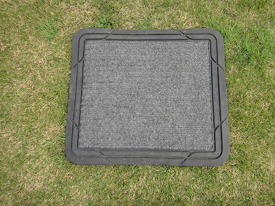 便利グッズです。着替え用マットに使用しています。カー用品店で500円でした!これで砂も泥もへっちゃら。足触りもソフト。 | ![]() |