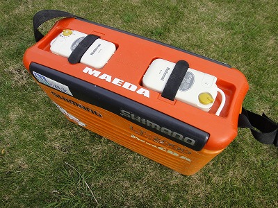 | おとり缶 | SHIMANO LT-2000 ダブルポンプは効果大です。 予備に20Lをもうひとつ用意しています。(大漁時) |
