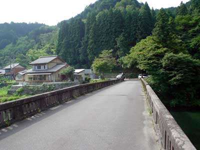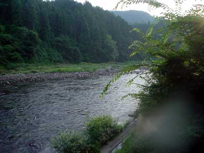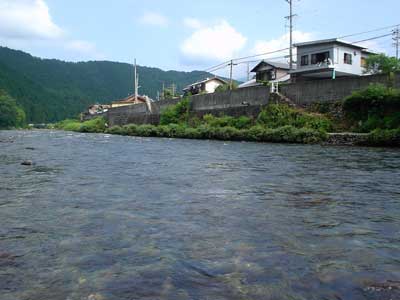 写っている民家が橋元屋さんです。 カーブの辺りから上流がポイント。川への降り口はいくつもあります。