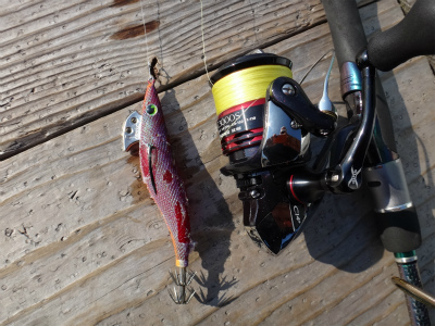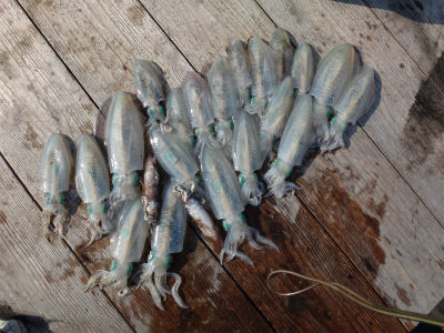 | この秋2回目のアオリは阿曽浦の裕丸(ひろまる)さんへ。筏が沖の方にあるので、台風26号接近時から湾内に退避してあって、29日からやっと再開したそうです。10番に乗って2時まで23杯も釣れました。色々試行錯誤したので書いておきます。 前回、礫浦の三吉丸さんで今秋初アオリ、船からのティップランエギングもお試しで少しさせてもらいました。と言ってもティップラン用の竿、仕掛けはまだ持っていません。通常エギング用の道具立てでエギだけお借りして体験。深さは40〜50mラインです。色々驚きがありました。まず、アオリは沖の深いところにもいる!そしてかなり速い速度で水平移動するエギに抱きついてくることです。この時は風が強く船がかなり流れる、そして深いのでエギは50〜70gです。かなり重い。底は取りやすいので、頑張ってしゃくってステイ。エギング用インターラインの竿の穂先=ティップでは硬すぎて当たりが取れません。手にくる感度だけが頼り。少しでも違和感があれば空合わせして探って行きました。当然船長は倍以上のピッチで掛けていきます。ティップランではラインも0.4号程度と細い。自分のは0.8号。細糸が必要な理由がすぐわかる。糸ふけ量が全然違う。同じ重さのエギを落としても着底位置が随分違うし時間もかかる。細いとの理由はこれで理解。船長の釣りを観察。ティップに僅かな当たりが明確に出る。着底してしゃくり、ステイのし初めに当たりが出やすい。なるほど。このタイミングに集中する。それでも5杯獲るのが精一杯。船長は13杯でした。筏ばかりでやっているとアオリはすごく繊細なのかと思っていましたが、かなり大胆なのですね。 これを頭に入れて今回は挑戦。いつもはフリーフォール主体で掛ける場合が多いのですが、今回はテンションフォールを多用。また水平移動を意識してゆっくり引いたりも組み合わせてやってみました。風波が常にある日でしたが、微妙な当たりにはすべて合わせを入れていきました。結果23杯と自分としては好釣果でした。ただしテンションを掛けているとどうしても早合わせが多くなり乗せきれなかったのが6回ありました。昨年からエギは3.5号以上しか使いません。底が取れないと釣りになりません。少々大きくてもアオリは抱きついてくれます。バットが強くて穂先の感度が良いインターラインの竿が欲しい! 前回の釣行から「一つテンヤ」の仕掛けを持って行っています。エサは7p前後の冷凍のエビです。前回は小魚に餌を取られるだけでしたが、今回はガツンときました。潮止まりになってアオリの反応が薄くなった時に昼食がてらやっていました。今回も小魚にあっという間に食われてしまいます。また餌やりだけかと思ったらガツン!ゆらゆら上がってきたのはハタ系の魚です。Facebookで聞くと「オオモンハタ」でした。鍋にして頭からヒレから全部食べました。ウマい魚です。海はこれがあるから面白いですね。豊かでスバラシイ! 裕丸さん(駐車場&船乗り場) |